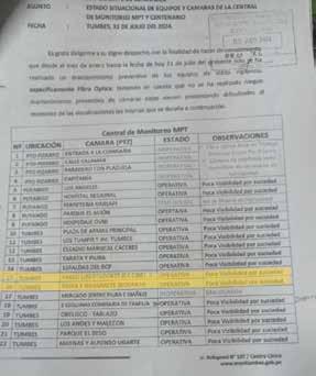 más álgida, según lo describe la regidora Cinthia Romero, quien hace unos meses realizó un informe situacional de las cámaras de videovigilancia de la Central de Monitoreo del distrito de Tumbes. “Las cámaras operativas tienen