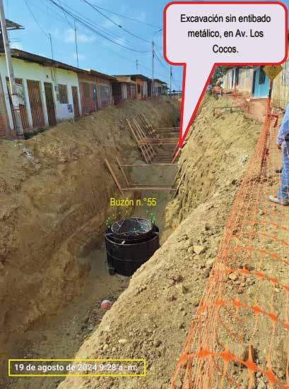 Entre las irregularidades más preocupantes se encuentra el incumplimiento del contratista, en los trabajos de entibado de zanjas, lo que no se estaría realizando conforme a lo estipulado en el expediente técnico. Esta falta no solo pone en riesgo