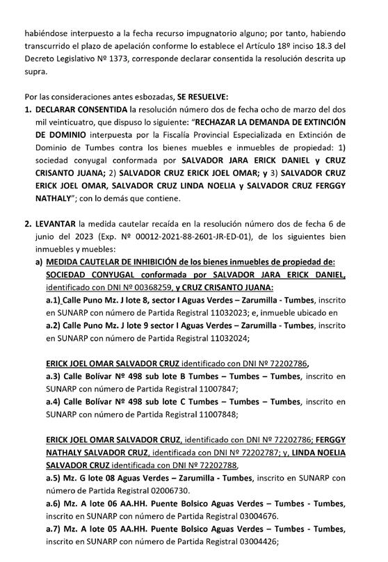 En un informe anterior, Tumpis indicó que el fiscal David Sialer había interpuesto una demanda de Extinción contra la familia Salvador. Sin embargo, esa información es incorrecta.