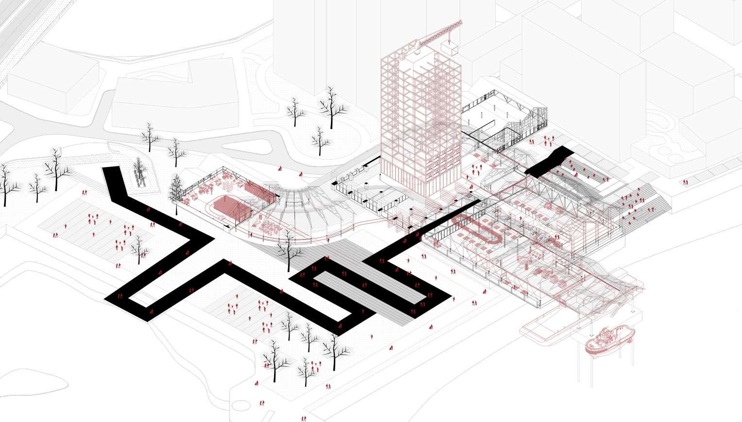 Although in its current state, it is excluded by the housing projects next to it and left to its fate, it does not see any value, but it offers the necessary opportunities for Loop Pool in many different ways due to its potential and being a bridge to public spaces.