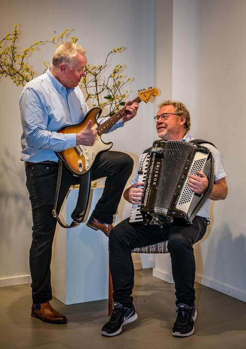 Jørgen Mosbæk med baggrund som musiklærer og foredragsholder, synger og spiller på harmonika.
