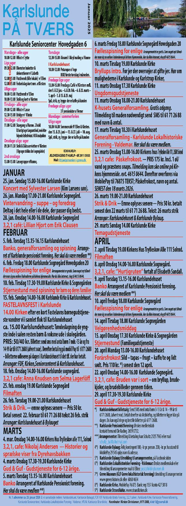 Mandag den 16. februar: Mølleåen Tirsdag den 10. marts: Ishøj med frokost i Kabyssen, Onsdag den 8. april: Anemonetur til Holbæk