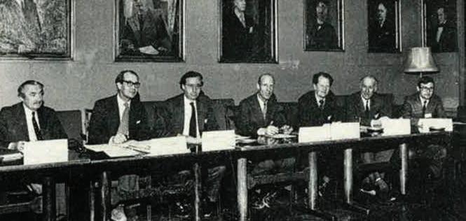 Left: The ITA Executive Council under first President Alan Muir Wood of the UK (third from left) at it inaugural gathering in Oslo, Norway, 1974. Right: Second President E.C. Fischer of Sweden (centre) and Vice President William Lucke of the USA (left) at the 4th annual meeting in Tokyo in 1978 hosted by Member Nation Japan and Dr Takeshi Shinohara (right) President at the time of the Japan Tunnelling Association