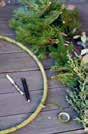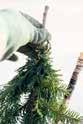 du trenger En kraftig grein til stamme Små greiner av vintergrønt, som gran eller tuja Stålstreng