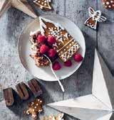 montering Del bunnene i to. Ha litt av ostekremen og noen oppdelte bringebær mellom hvert lag. Topp kaken med et lag med ostekrem og noen hele bringebær. Vi har valgt å pynte kaken med KlompeLOMPEs pepperkaker husform. Bruk da gjerne litt glasur for å feste husene til kaken.