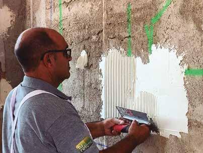 Tiene una máxima trabajabilidad para una colocación perfecta, sobre todo para baldosas de grandes dimensiones. Ofrece una seguridad total cuando se usan sistemas de nivelación en la colo cación de gres porcelánico y láminas cerámicas de bajo espesor. Con una cobertura total que no merma de espesor. Además, ga rantiza la eficiencia en suelos radiantes.