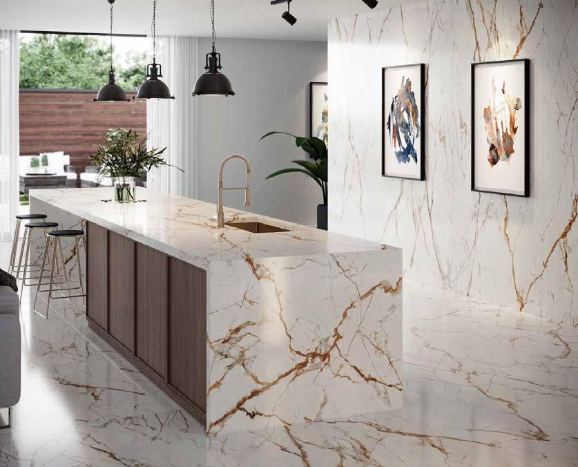 Este año hemos visto pasillos llenos de expositores que exhibían sus mejores propuestas en diseño para el próximo año. En espe cial hemos observado una evolución que ha supuesto una fusión entre la piedra y la madera. Una manera de llevar a la exaltación a la piedra introduciendo veteados en relieve y volúmenes rugo sos, creando una apariencia muy real de la piedra.