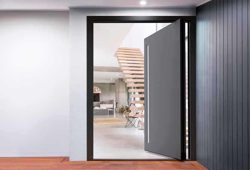 La nueva puerta Millennium Plus Pivot de CORTIZO responde a las últimas tendencias en diseño, convirtiéndose en una solución de vanguardia para la arquitectura contemporánea. Esta serie permite cubrir vanos de acceso de grandes dimensiones gracias a la instalación de ejes excéntricos sobre los que pivota una hoja panelada de hasta 3 metros de altura y 2,1 metros de ancho. La versatilidad estética de este sistema viene impulsada por el amplio catálogo de paneles disponibles en el mercado que posibilitan una infinidad de diseños adaptados a las diferentes tendencias. Además, se puede incorporar un tirador led embutido, remarcando así la estética vanguardista de la serie.