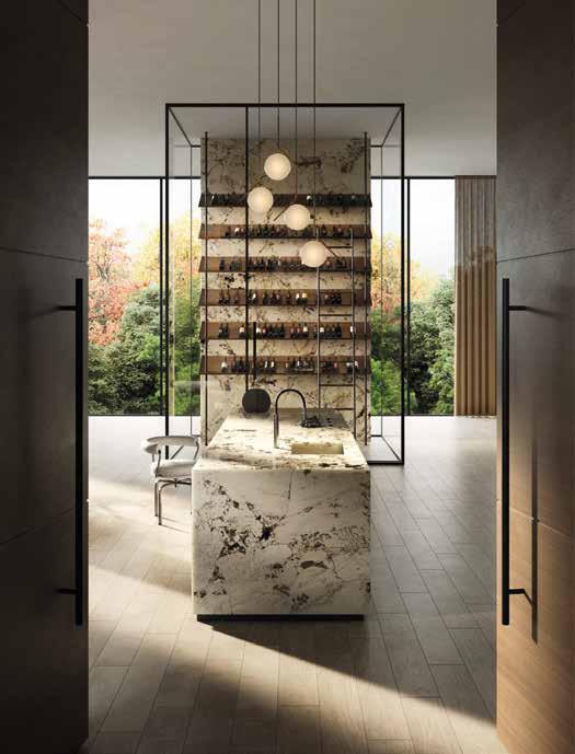 Un ejemplo del sabor exquisito y único de la gama se encuentra en los acabados del tablero marino, ya que se seleccionan las piezas de forma numerada para respetar la continuidad de la veta en todo el mueble.