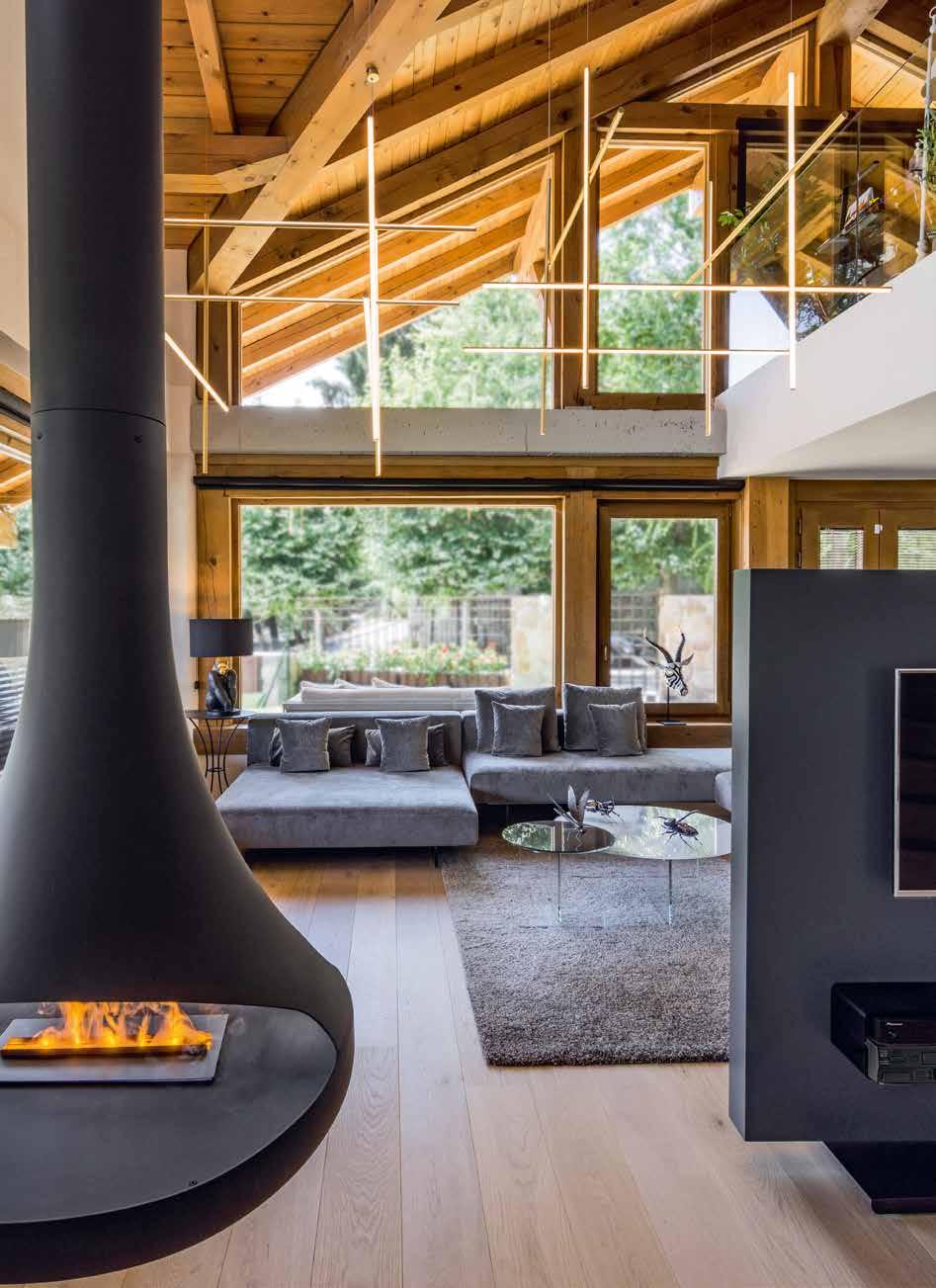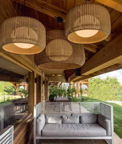 Destacar que en el proyecto de iluminación Cristina Amigo ha creado una composición con las coordinates de flos, que luce 360°, mostrando el entramado de madera del techo, suspendida en la altura de 6m, que ha denominado Caos, por su falso desorden. El punto focal del proyecto es la chimenea doria volada a doble cara que comenta Amigo: “Hemos disfrutado mucho definiendo cada detalle, diseñando la base para que soportara el sistema de vapor de agua y adaptándola al espacio”