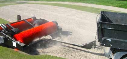 The Sweep-N-Fill’s two contra-rotating brushes floating independently, allowing it to follow undulations across greens, tees, and approaches.