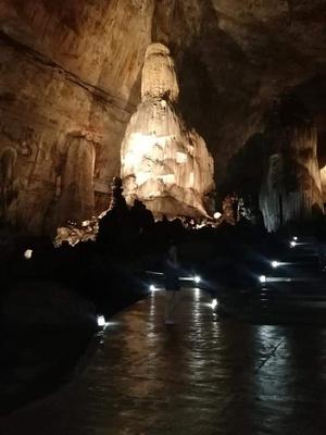 Sus espectaculares formaciones de rocas calizas de origen marino se formaron hace 85 millones de años y se cree que fueron esculpidas por la corriente del río San Jerónimo que corre por debajo de la gruta a una profundidad de 95 m.
