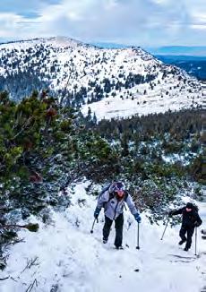 Ki is térünk a Magosfára, ahol a Tátra-látáson túl hazánk legmagasabban fekvő kősáncai is kirajzolódnak az itt már nem is annyira vékony hótakaró alatt. Innen jön aztán az igazi örömtúra: a fákról lepergő zúzmara mintha csillámpor lenne, a kaldera peremén járva pedig hollók hangja hozza fel hozzánk az Oltár-patak vadregényességét. A Csóványosra felérve pedig nemcsak a Magas-Tátrát, az Alacsony-Tátrát és a Nagy-Fátrát látjuk, de sok ismerőssel is
