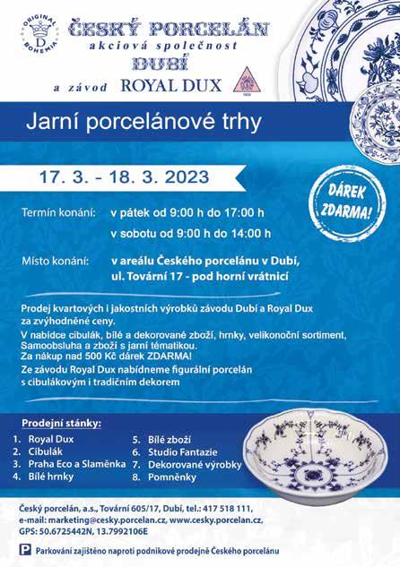 Po cestě k česko-německým hranicím nemůžete minout věhlasné město Dubí, které je známé bohatou sklářskou výrobou. Jsou zde sklárny, ve kterých se vyrábí obalové sklo, ale i ornamentní sklo. Vyrábí se zde světoznámý „cibulový porcelán - cibulák“. Jarní porcelánové trhy s prodejními stánky se konají od 17. do 18. března v areálu Českého porcelánu Dubí.