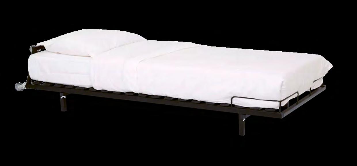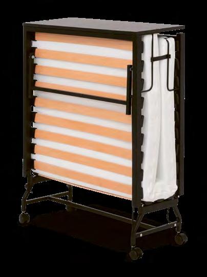 Pomoćni krevet / Dimenzije: 90 x 210 x 45 cm (okvir kreveta) 90 x 205 x 10 cm (madrac) / Konstrukcija: Čelični okvir s bazom od 19 letvica / Madrac: Pjena SG40, debljina 10 cm / Mehanizam: sklapanje; kotači za zaštitu poda