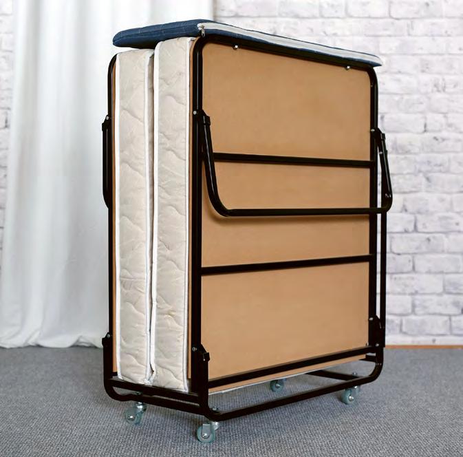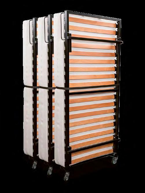 Dimenzije: 90 x 203 x 45 cm (okvir kreveta) 90 x 190 cm (madrac) / Konstrukcija: Čelični okvir / Mogućnost vertikalnog skladištenja (4 kreveta na 1,5 m²) / Madrac: Opružni / Mehanizam: sklopive noge, kotači za zaštitu poda