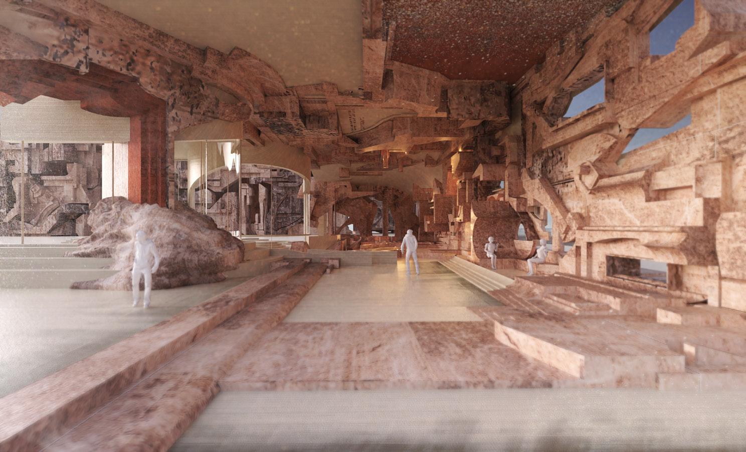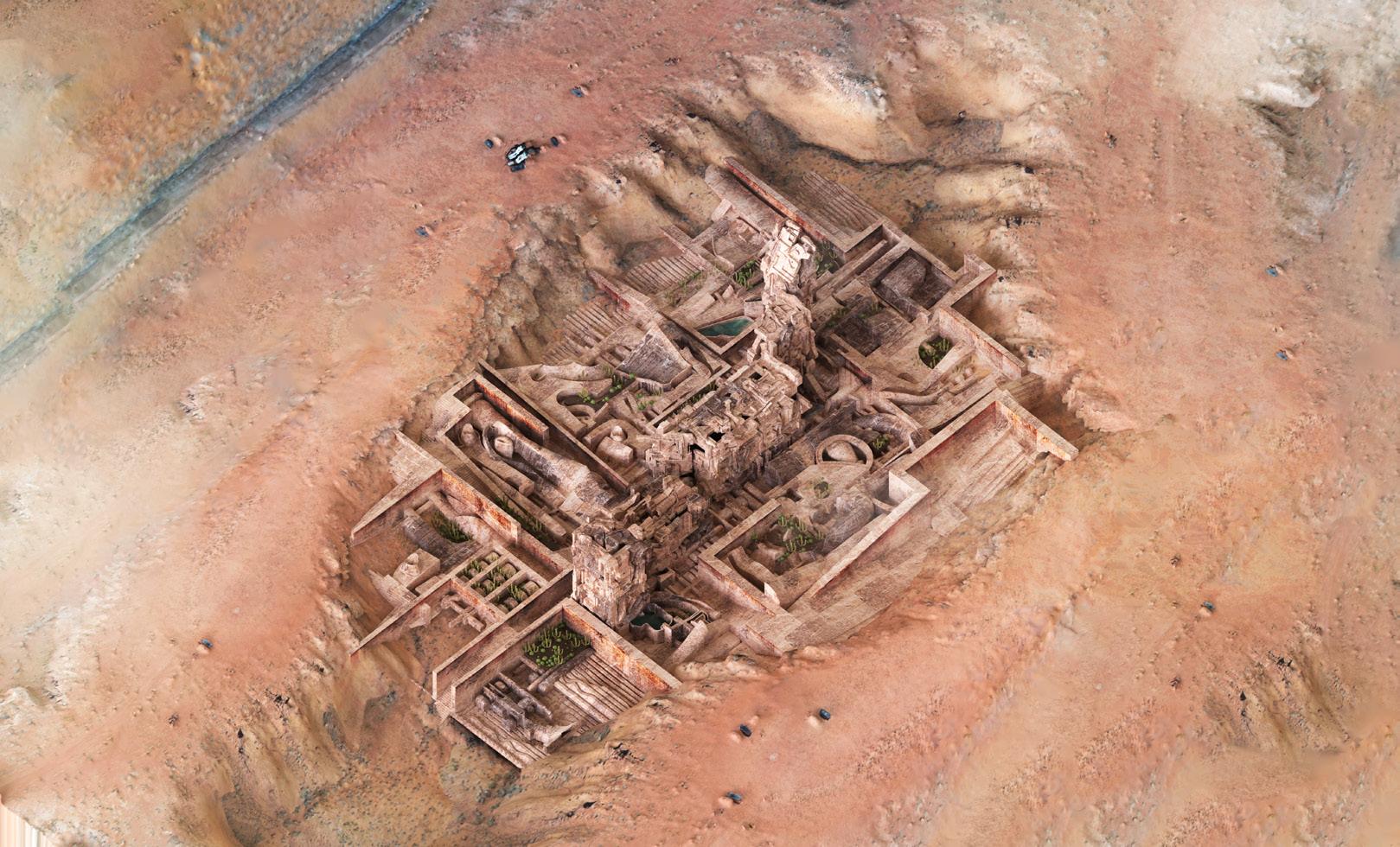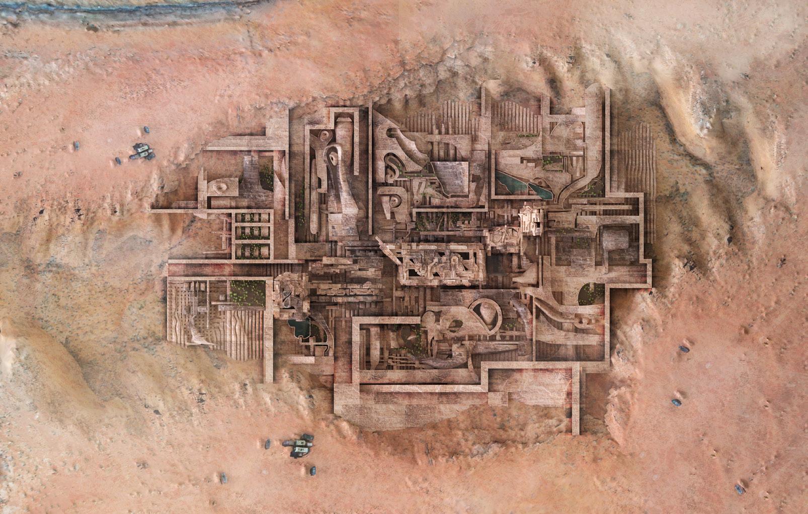 This project methodology focuses on Convolutional Neural Networks (CNNs) to begin transposing and synthesizing specific features of the reliefs. CNNs is a network architecture for deep learning which comprehends directly from data, eliminating the need for manual elements and feature extraction. CNNs are particularly beneficial for locating patterns in images to recognize cultural artifacts and objects sourced from deserts. In addition, the design utilizes contemporary methods of documentation and representation to compose architectural materials and textures. Photogrammetry techniques were used to 3D scan the site in various postures. The project engages in the process of defamiliarization and conducting historical research on desert culture.