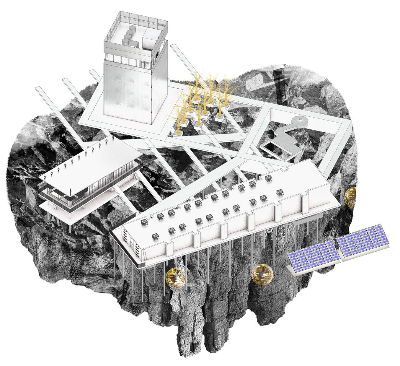 The project focuses on the demands related to finances, work, relationships, and other situations. The design is a resort that is a socially acceptable space to release tension and stress where the users can experiment with different stress relievers that work best for them. For example, laws on marijuana use for medicinal purposes have changed dramatically over recent years. Researchers found that marijuana improved depression symptoms and helped treat pain and cancer.