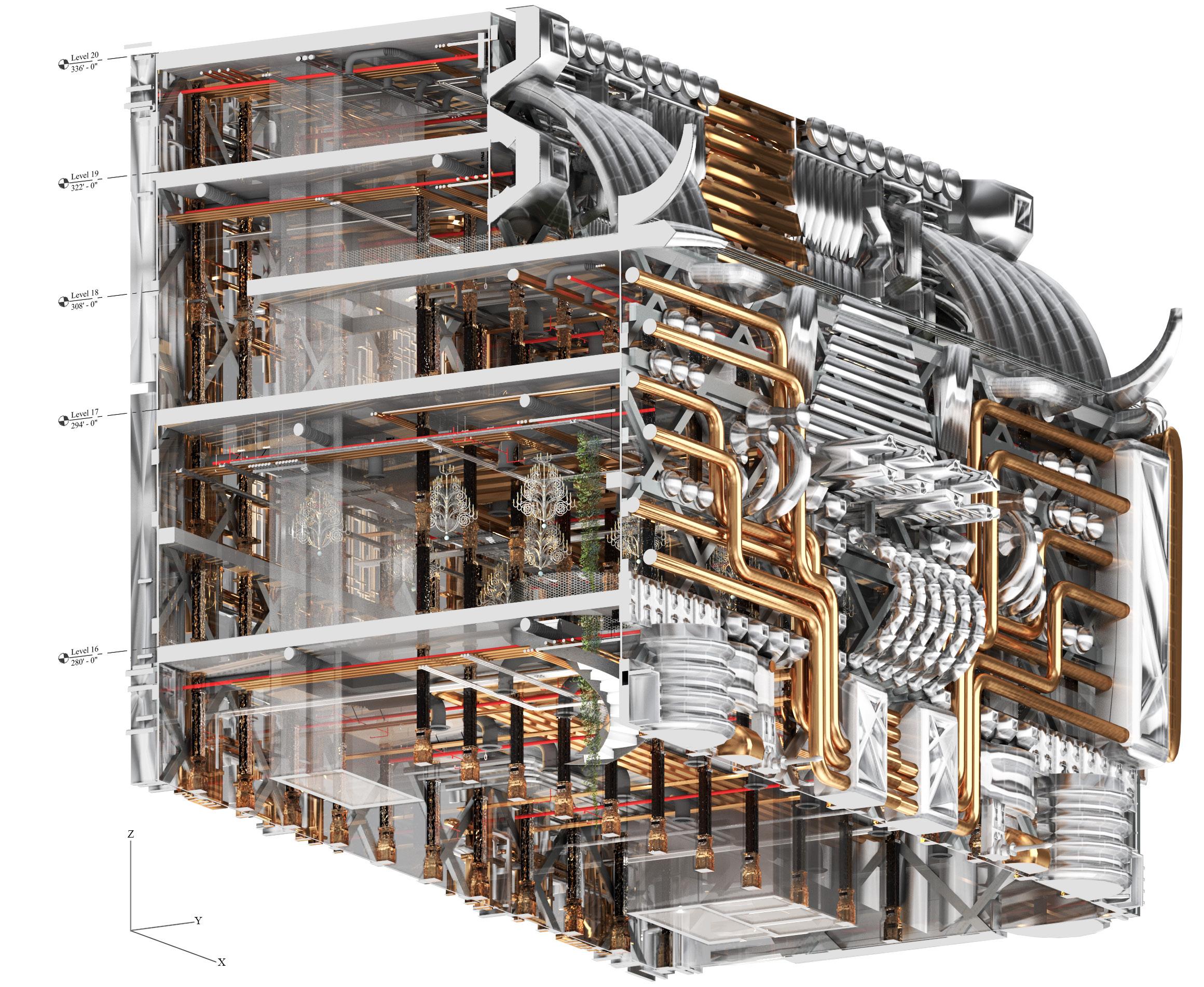 This project speculates that a new typology can help sustain New York City’s global financial leadership in the world. New York cannot solely rely on import and export economies with the uncertainty of political pressures that affect the prices of goods and services. New York and other cities need to reinvent existing networks to be able to compete with trade barriers that are cumbersome and willfully destroy the growth of the global economy while having ramifications on New York City. New York City needs to raise capital as the Federal and State Governments have not helped New York’s finances in any way. If New York City mines Non-Fungible Tokens (NFT’s) that are pegged to Real Estate value in the city, residents and visitors alike can invest in the City’s future. Non-fungible tokens are a unit of data stored on a digital ledger, called a blockchain, that certifies a digital asset to be unique and therefore not interchangeable. This methodology of the project focuses on testing the limits and boundaries between programs to measure the spaces’ quality and performance. The two main spaces I focus on are data storage and museum/ galley spaces. By analyzing and examining patterns and five molding types, I am able to assemble a sequence of motion, sets of information that inform my proposal. Each of the five moldings has a specific function -from being the main structure of the building to window mullions. Focusing on the interior of the building, the transition space between the data storage and museum is created to give users access and a chance to explore and interact with the data they use and benefit from every day. Also, by analyzing the data storage spaces. The contrastive concept creates the massing and building facade based on the program and the use of the spaces. For example, the facade of the data storage has no opening, while the museum has more openings.