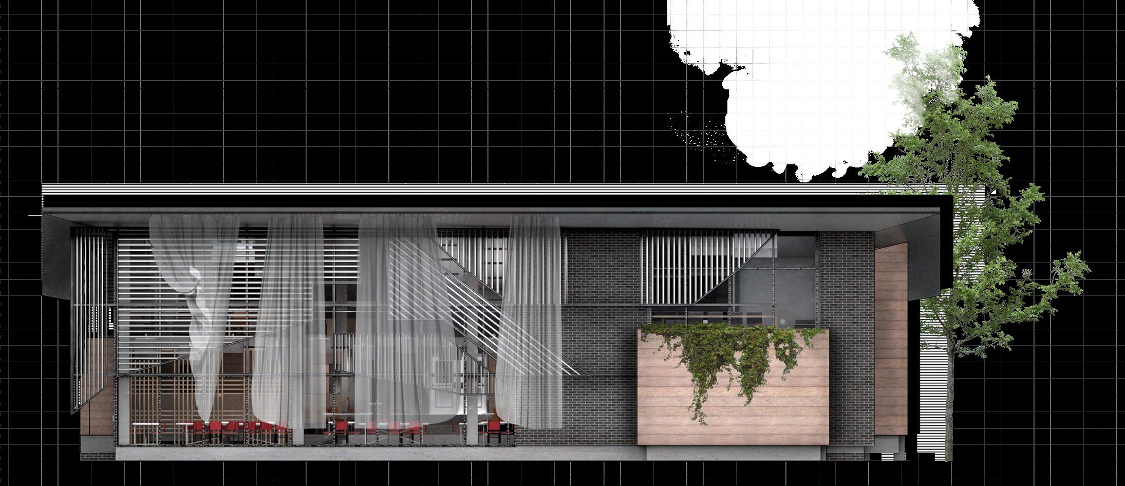The proposal is to transfer space in the building to a new applied platform that keeps pace with the current era. Our research seeks to understand the principles of the abandoned classic building to develop a methodology that can co-exist and interact with the new part created on this site. The project’s approach is renovating part of the abandoned building as a gathering place for communication in the digital age. Preserving one corner of the existing classic building and introducing new elements from our digital age will inspire potential social encounters and interactions. In this way of acupuncture, renovating part of the building will trigger conversations and activate the whole area socially, economically, environmentally, and visually.