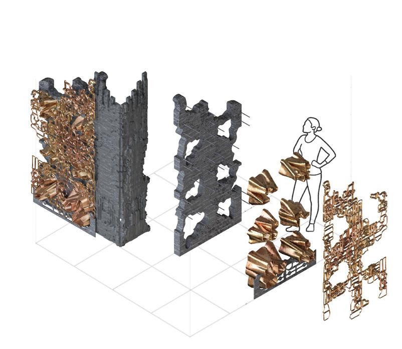 The confluence of these different mediums and their specific techniques and technologies was viewed as a critical component of manifesting ideas in matter. In modern times, however, the iconographic function of architecture shifted toward abstraction, and an emphasis was placed on separating mediums dealing with images, objects, and architecture rather than further integrating them. The project reexamined the combinatorial alliance of image, object, and architecture in the context of contemporary cultural ideas and technologies by designing artifacts that produce novel architectural effects and iconographies.