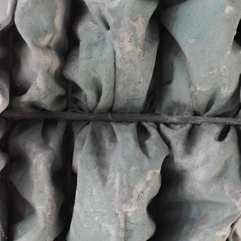 The fabric made for the cylinder would be woven in a double weave structure. The yarns would be made with thin polyester, so the fabric would still be translucent, even though it is a double weave. The double weave tubes in the structure are formed in the horizontal direction. They would be 6 inches wide in the finished fabric, and the space in between is 18 inches. In between the pleats, there are channels that are woven in and run the height of the cylinder. Inside the channels are plastic tubings that move with the tubes as it expands, contracts, and rotates.
