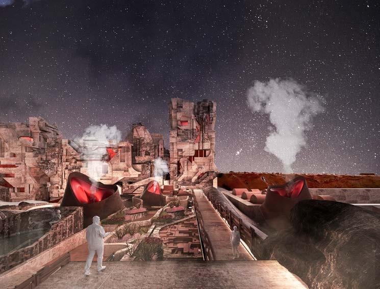 This project methodology focuses on Convolutional Neural Networks (CNNs) to begin transposing and synthesizing specific features of the reliefs. CNNs is a network architecture for deep learning which comprehends directly from data, eliminating the need for manual elements and feature extraction. CNNs are particularly beneficial for locating patterns in images to recognize cultural artifacts and objects sourced from deserts. In addition, the design utilizes contemporary methods of documentation and representation to compose architectural materials and textures. Photogrammetry techniques were used to 3D scan the site in various postures. The project engages in the process of defamiliarization and conducting historical research on desert culture.