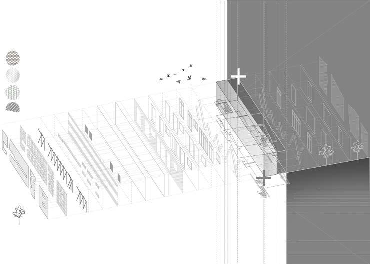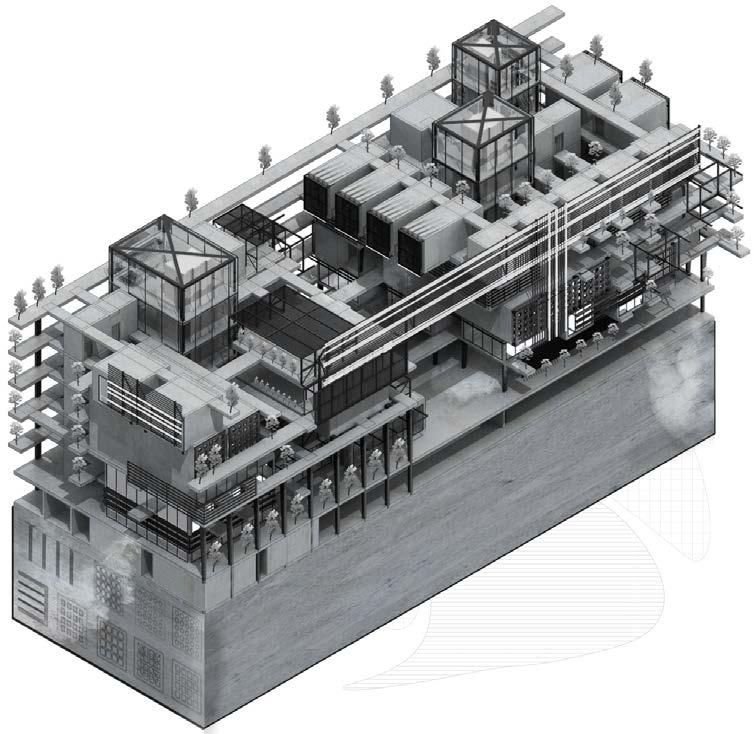 The proposal is to transfer space in the building to a new applied platform that keeps pace with the current era. Our research seeks to understand the principles of the abandoned classic building to develop a methodology that can co-exist and interact with the new part created on this site. The project’s approach is renovating part of the abandoned building as a gathering place for communication in the digital age. Preserving one corner of the existing classic building and introducing new elements from our digital age will inspire potential social encounters and interactions. In this way of acupuncture, renovating part of the building will trigger conversations and activate the whole area socially, economically, environmentally, and visually.
