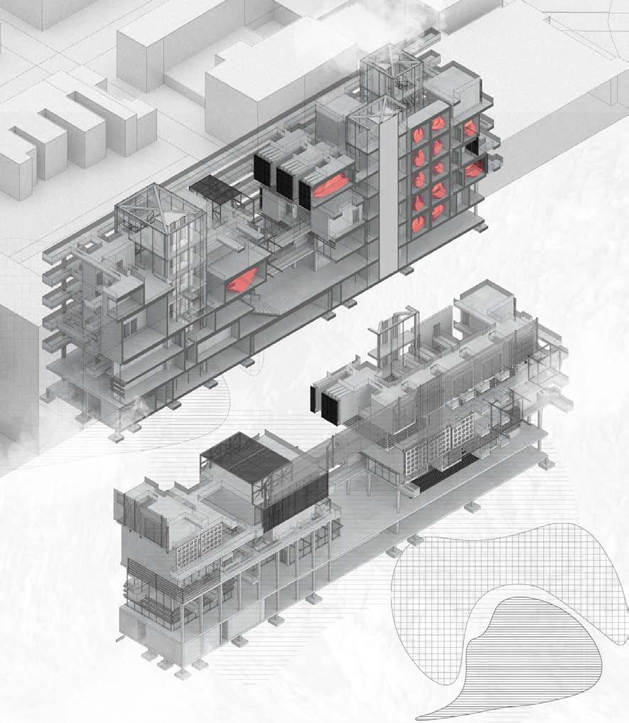 The project focuses on the demands related to finances, work, relationships, and other situations. The design is a resort that is a socially acceptable space to release tension and stress where the users can experiment with different stress relievers that work best for them. For example, laws on marijuana use for medicinal purposes have changed dramatically over recent years. Researchers found that marijuana improved depression symptoms and helped treat pain and cancer.