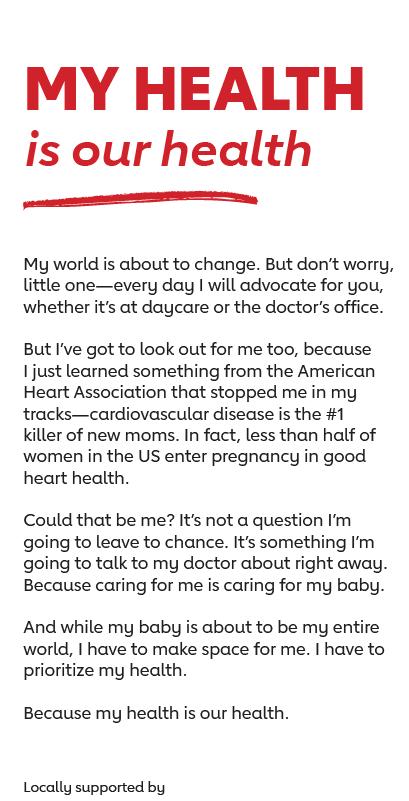 I’ve learned I need to care for myself too. The American Heart Association says cardiovascular disease is the #1 killer of new moms, and less than half of women enter pregnancy in good heart health.