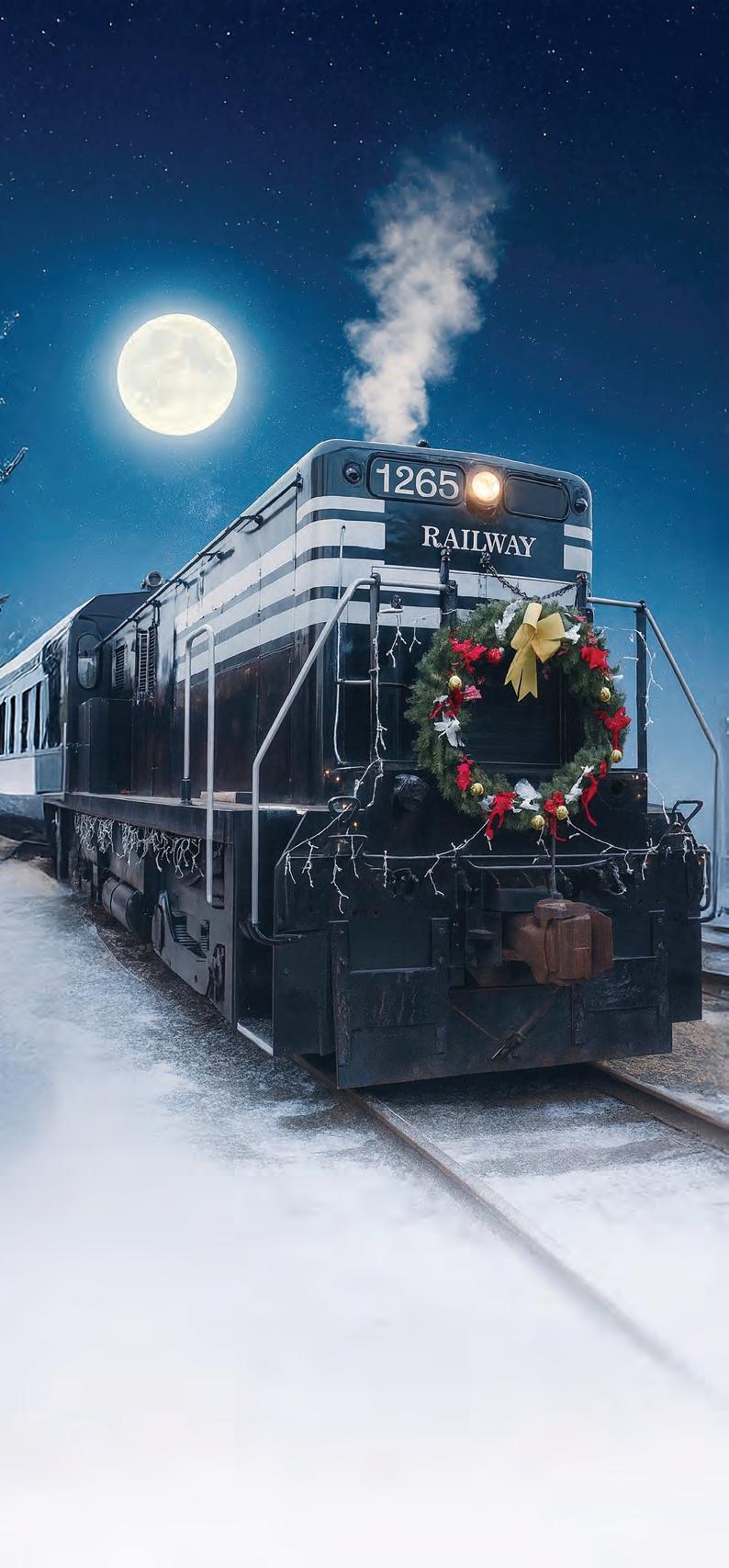 garlands adorn the vintage train cars, carolers hum nostalgic tunes, and the smell of cocoa flls the winter air. For one magical hour, passengers embark on a journey straight out of the pages of Chris Van Allsburg’s beloved Christmas classic — Te Polar Express.
