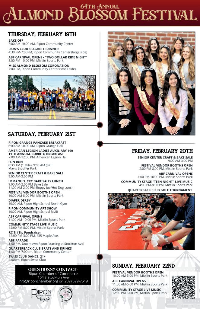 The San Joaquin Valley Swiss Club is serving as the grand marshal for the 64th annual Ripon Almond Blossom Festival on Saturday, Feb. 26, at 1 p.m. in downtown Ripon.