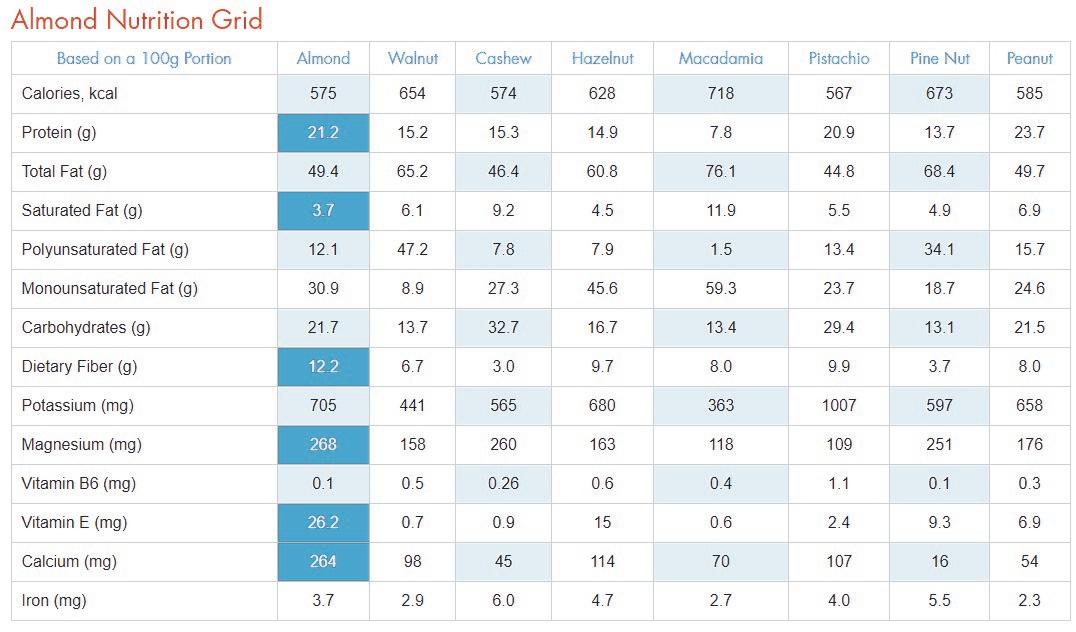 This might surprise you but there are more than 100 varieties of almonds grown in California. The nonpareil is the leading variety followed by Monterey, Butte, Carmel, and Padre. Almonds are not grown commercially anywhere else in the country.