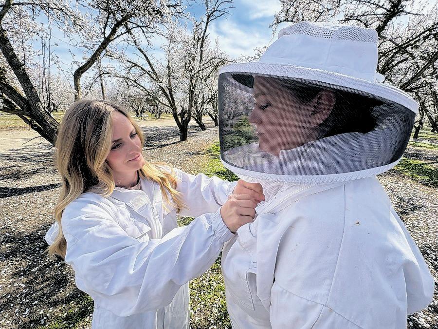 That requires them to don the prerequisite beekeeper suit and hat that work to keep the bees out while allowing the sweet smell of the blossoms in.
