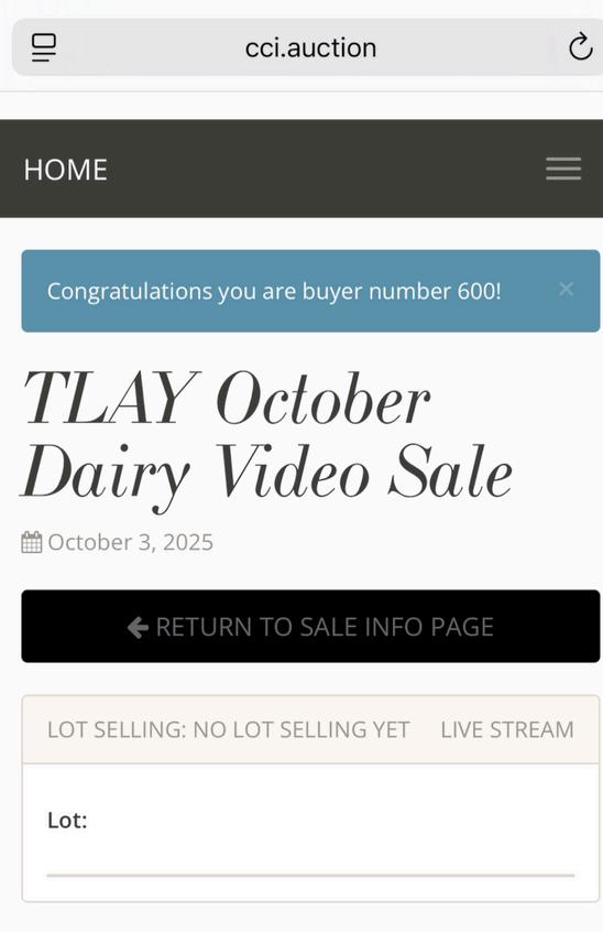 To any new buyers out there, understand that all of these lots have been sorted and filmed by one of our representatives. The cattle you see in the film are the cattle you are bidding on. Upon purchase, we will be in contact with you to arrange shipment dates and trucking.TLAY Dairy Video Sales will assist the seller in all necessary health and brand papers. In addition, at the time of shipment, we will always represent the best interest of the buyer on the final sort before loading. In most cases you will have the records digitally before the cattle arrive, all dairy herd records are transferred seamlessly. At TLAY Dairy Video Sales we strive for consistency, quality, and integrity. Our commitment is to transparency and customer service. Bid with confidence.