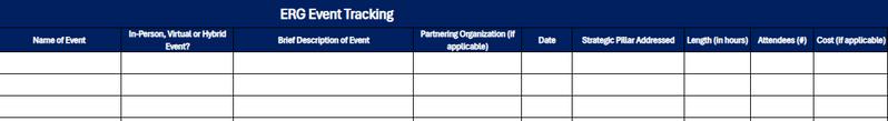 You can use the Event Tracking Excel to keep track of your own ERG Events This excel includes: