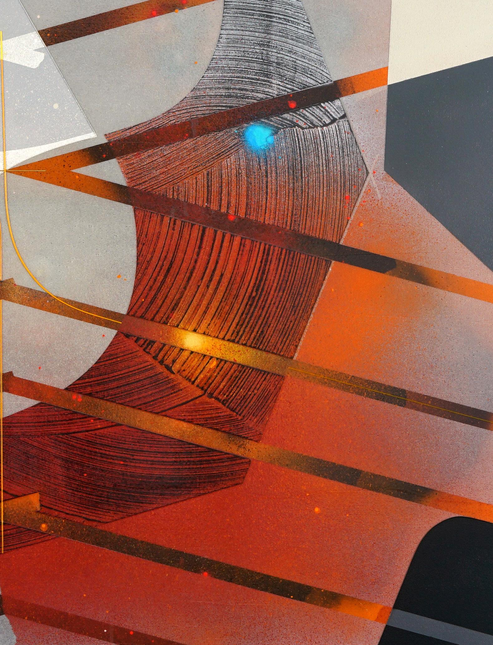 ocean vistas and open sky versus the relentless linearity of urban freeway systems. His method—a reductive and additive layering ritual—recalls an abstract archaeology: excavated textures meet precise hard - edge forms in a personal vernacular built from cultural signifiers and industrial gestures.