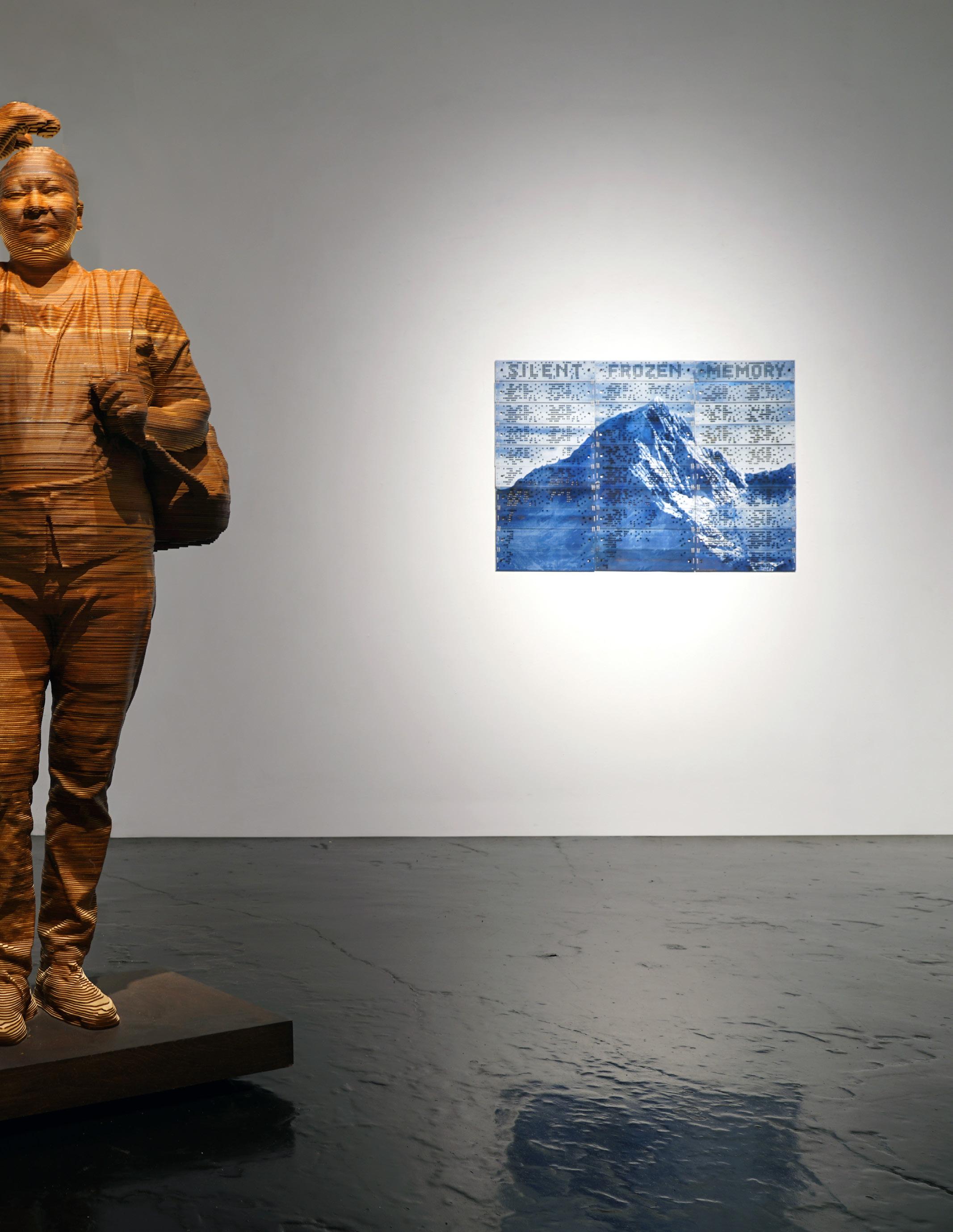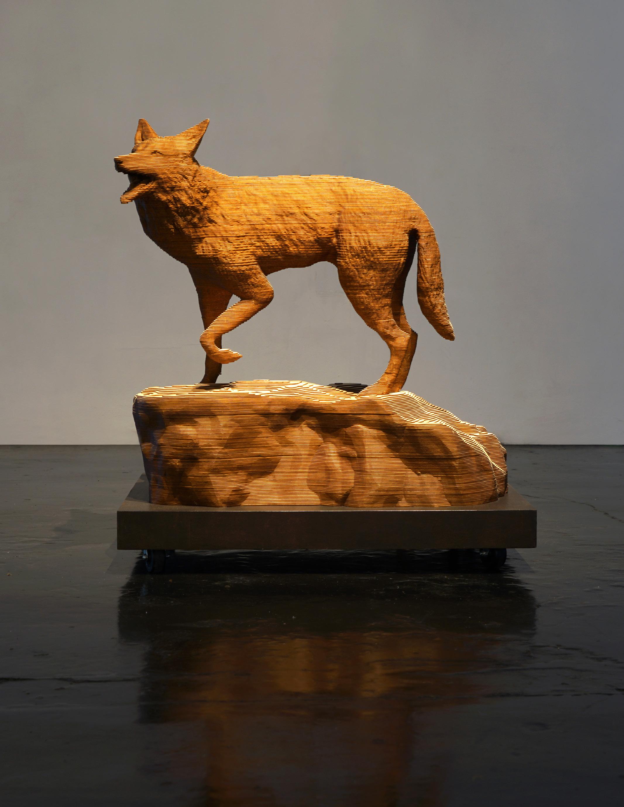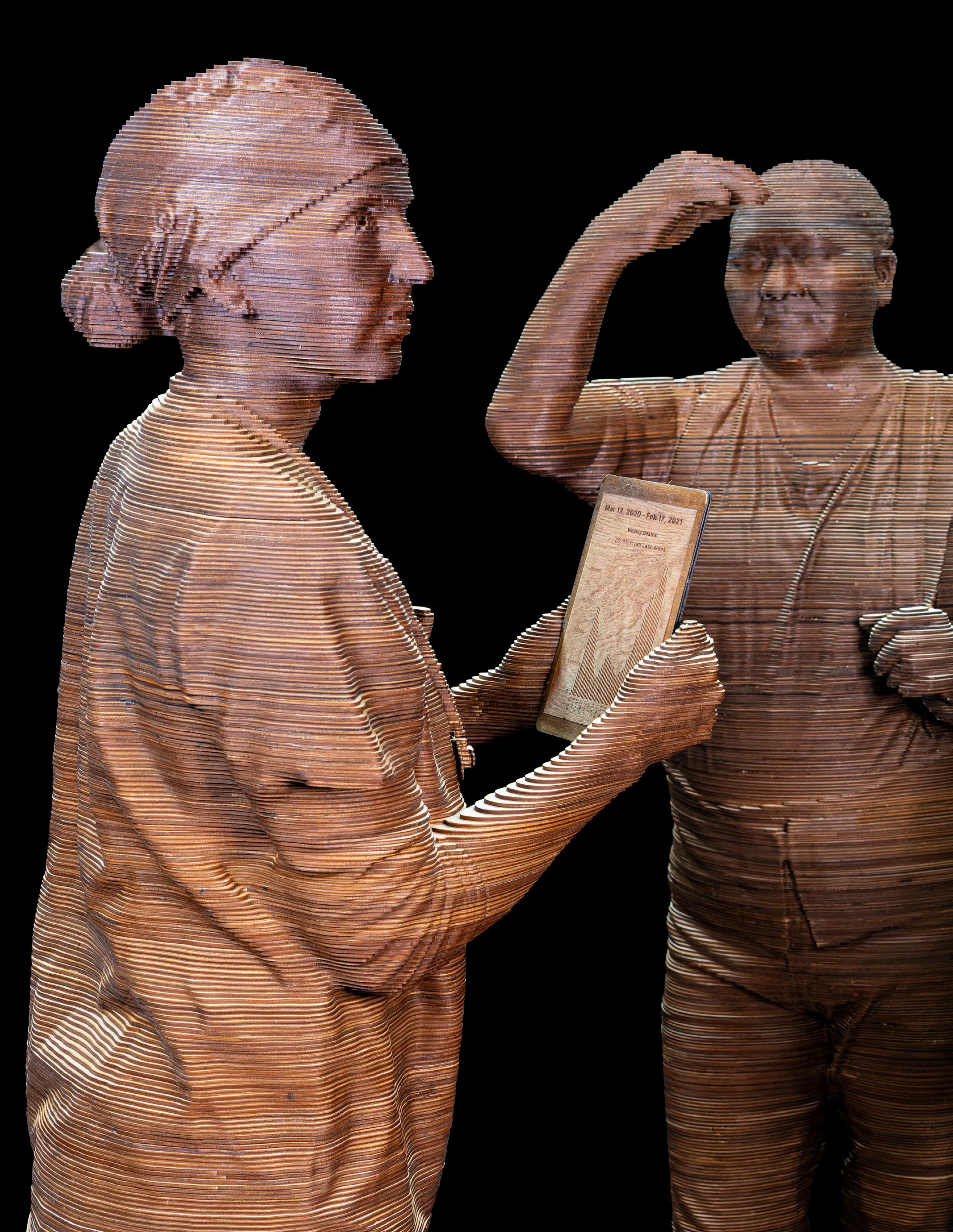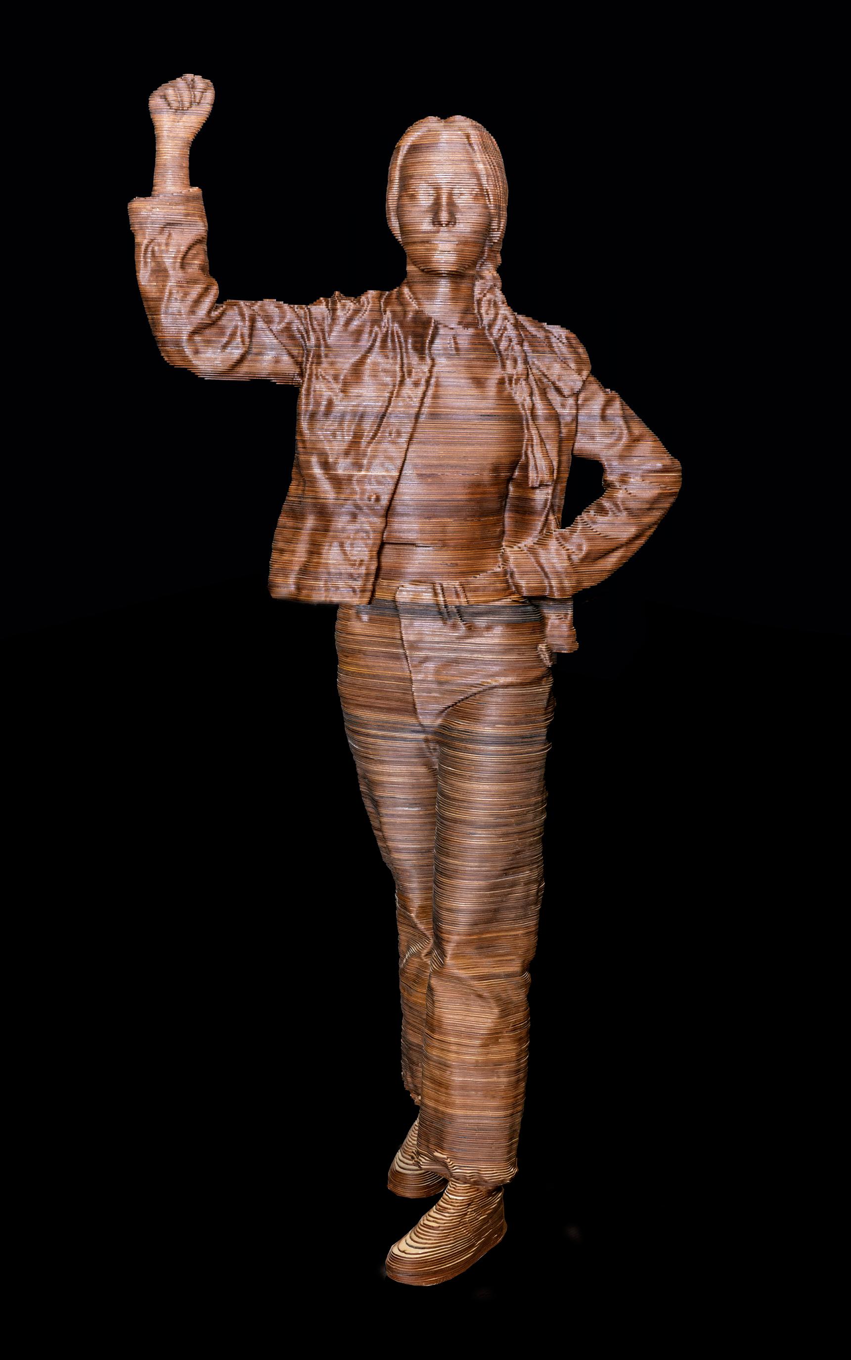 Nalleli Cobo Environmentalist, 2023, 3D Scan, laser cut on birch wood and metal, 64” x 32” x 20, (Edition of 3)