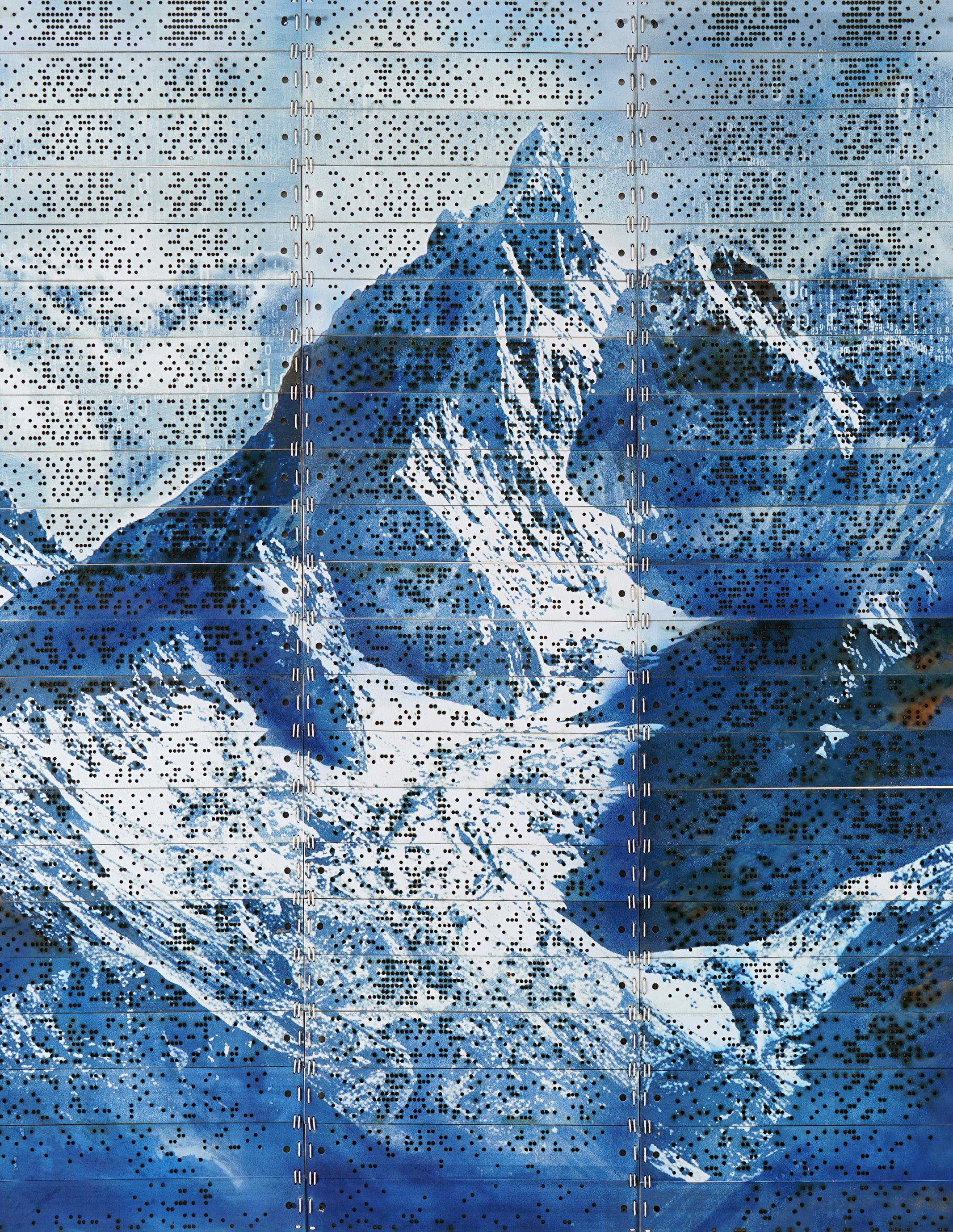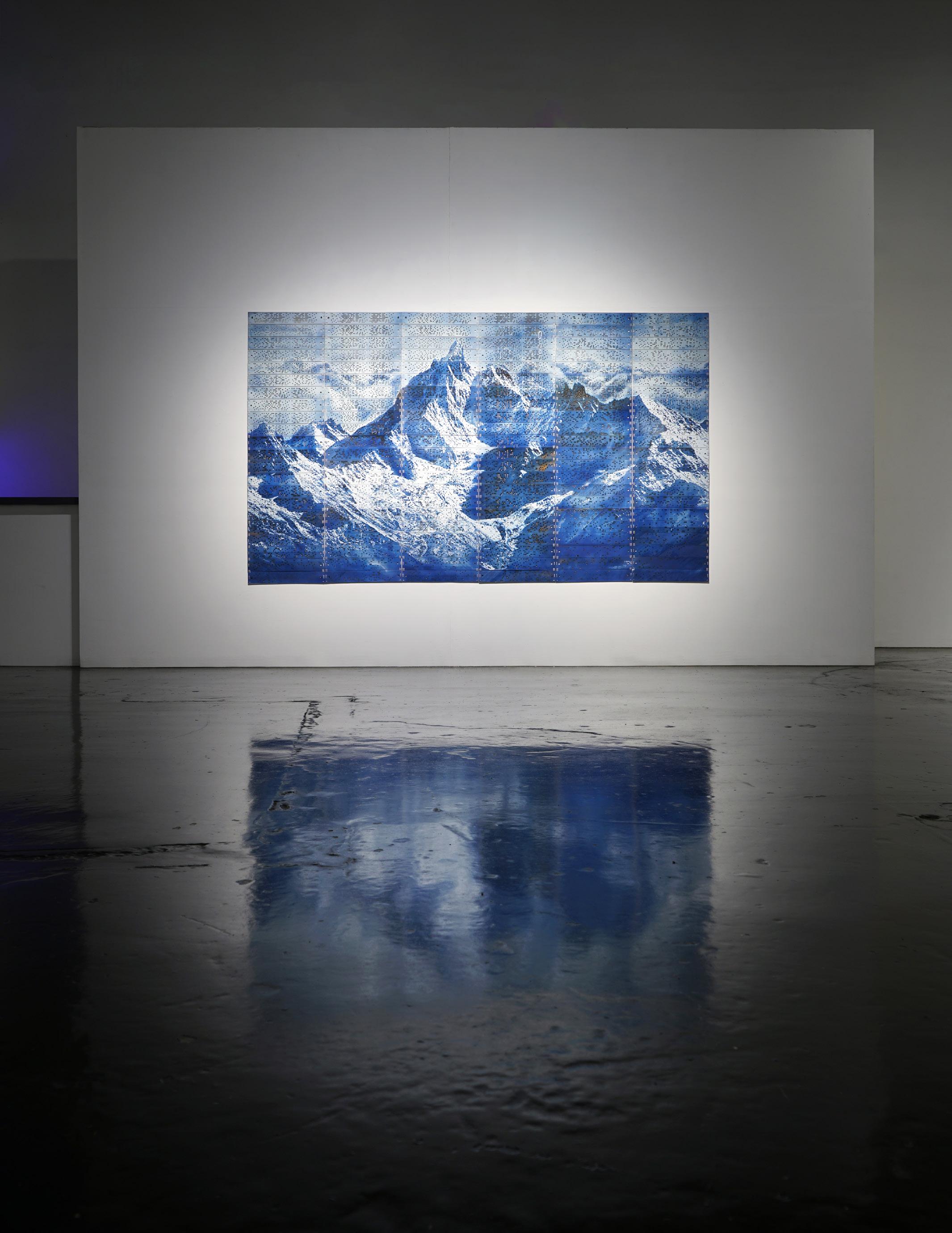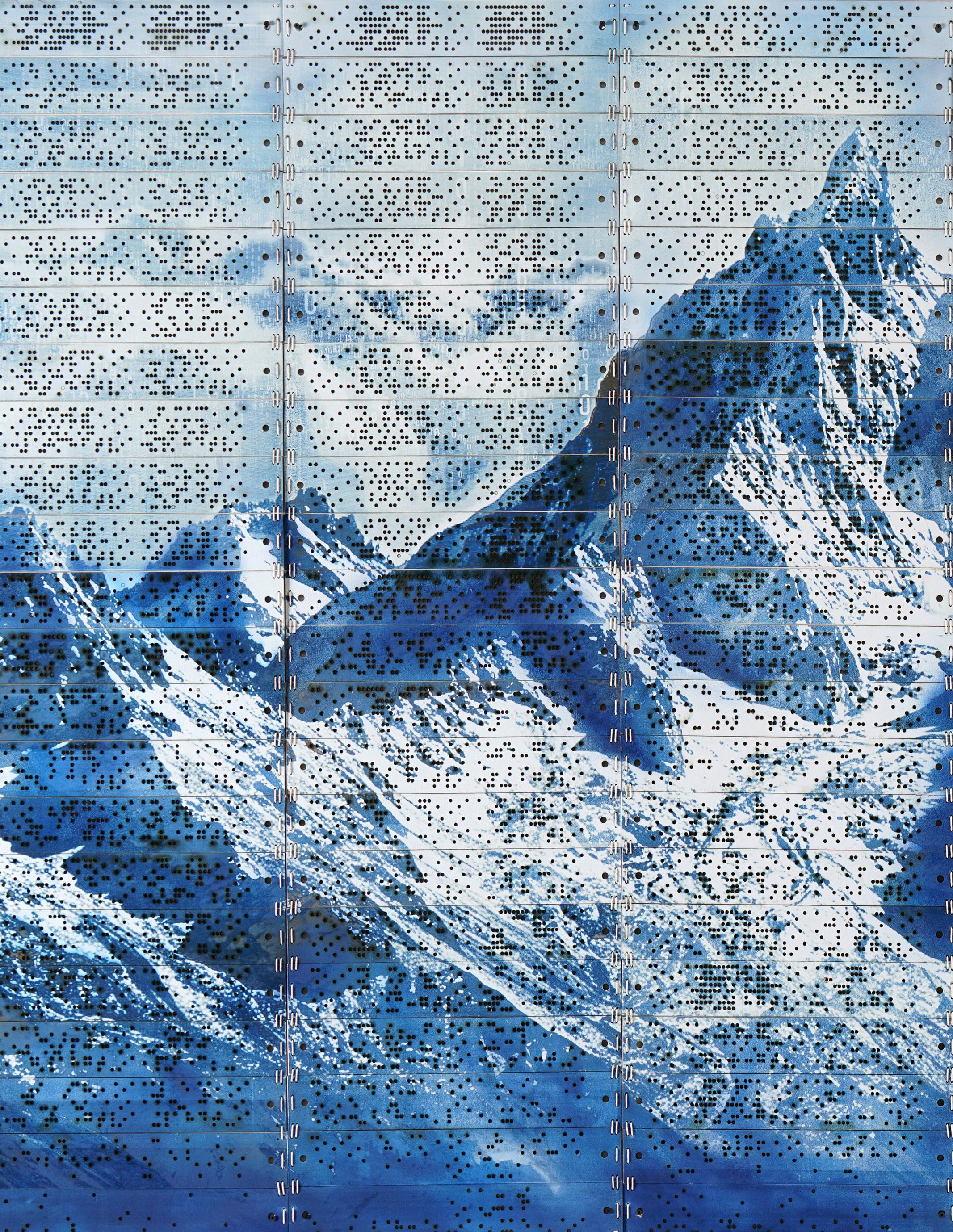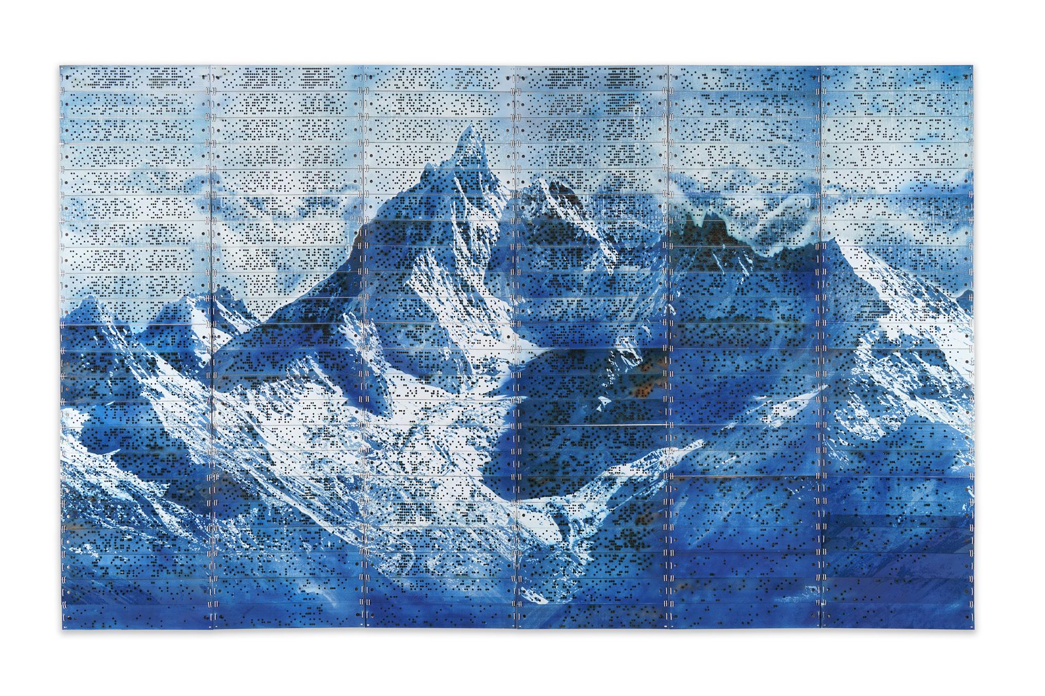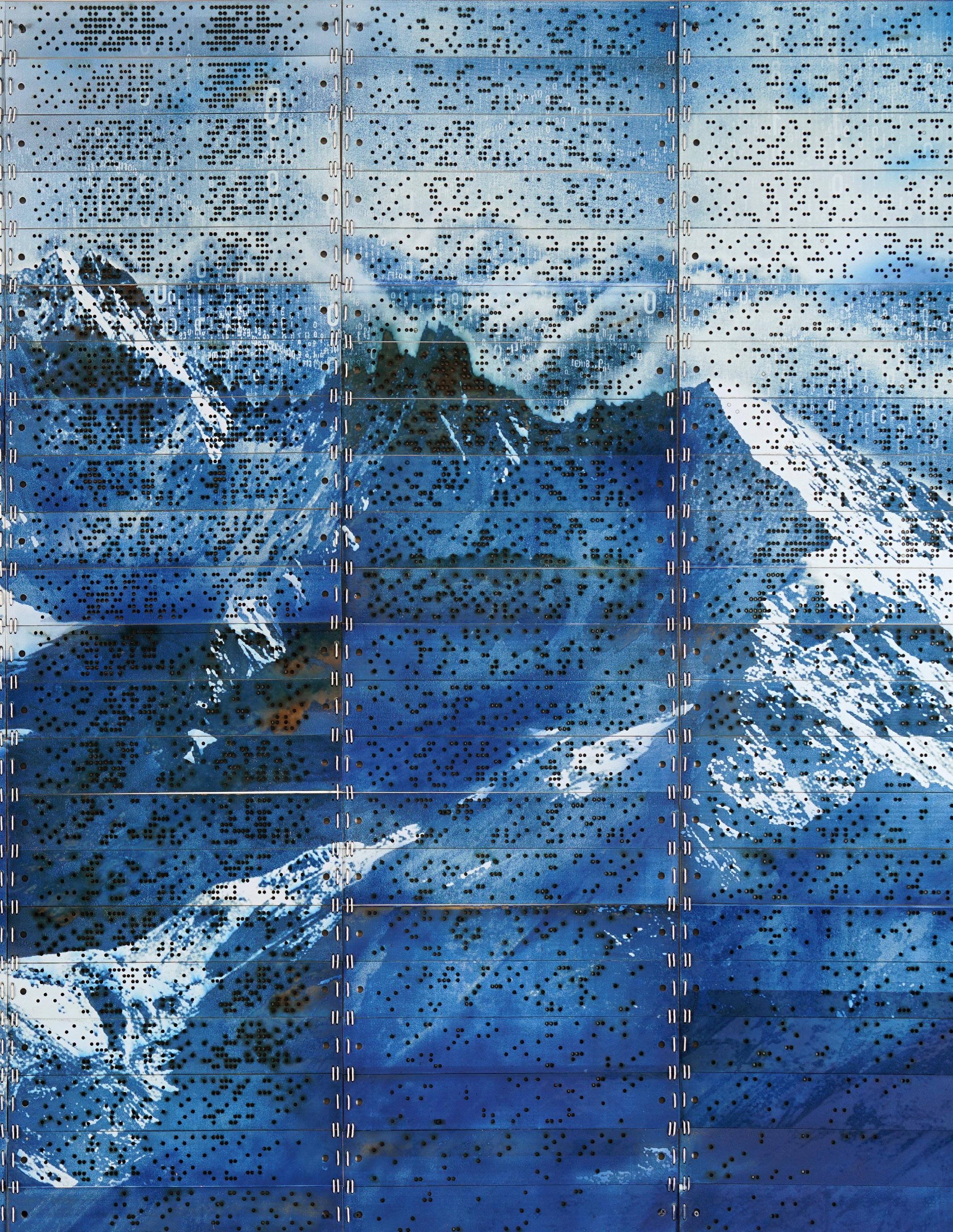 Andes / Memory, 2025, Mixed media on wood and layers of pigment, laser cut, 72” x 120”