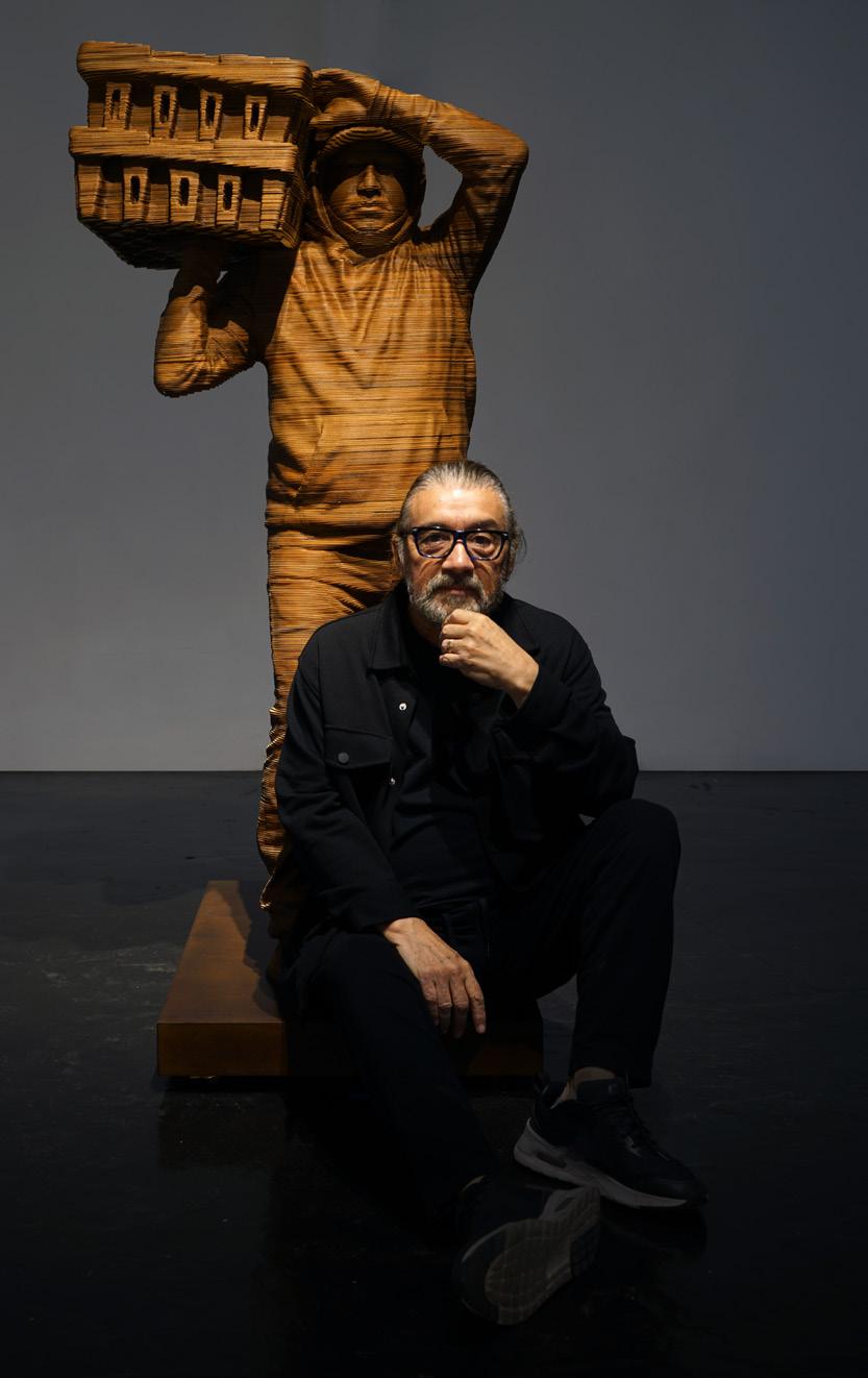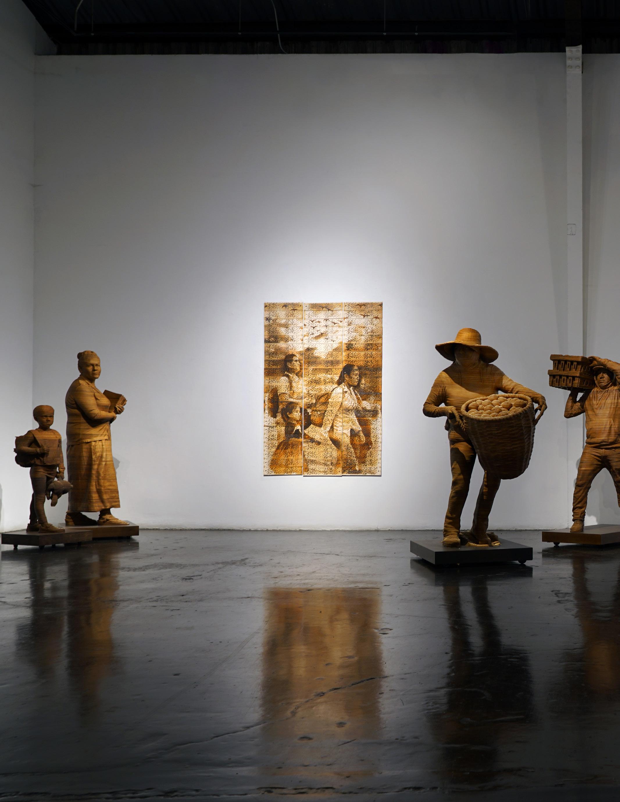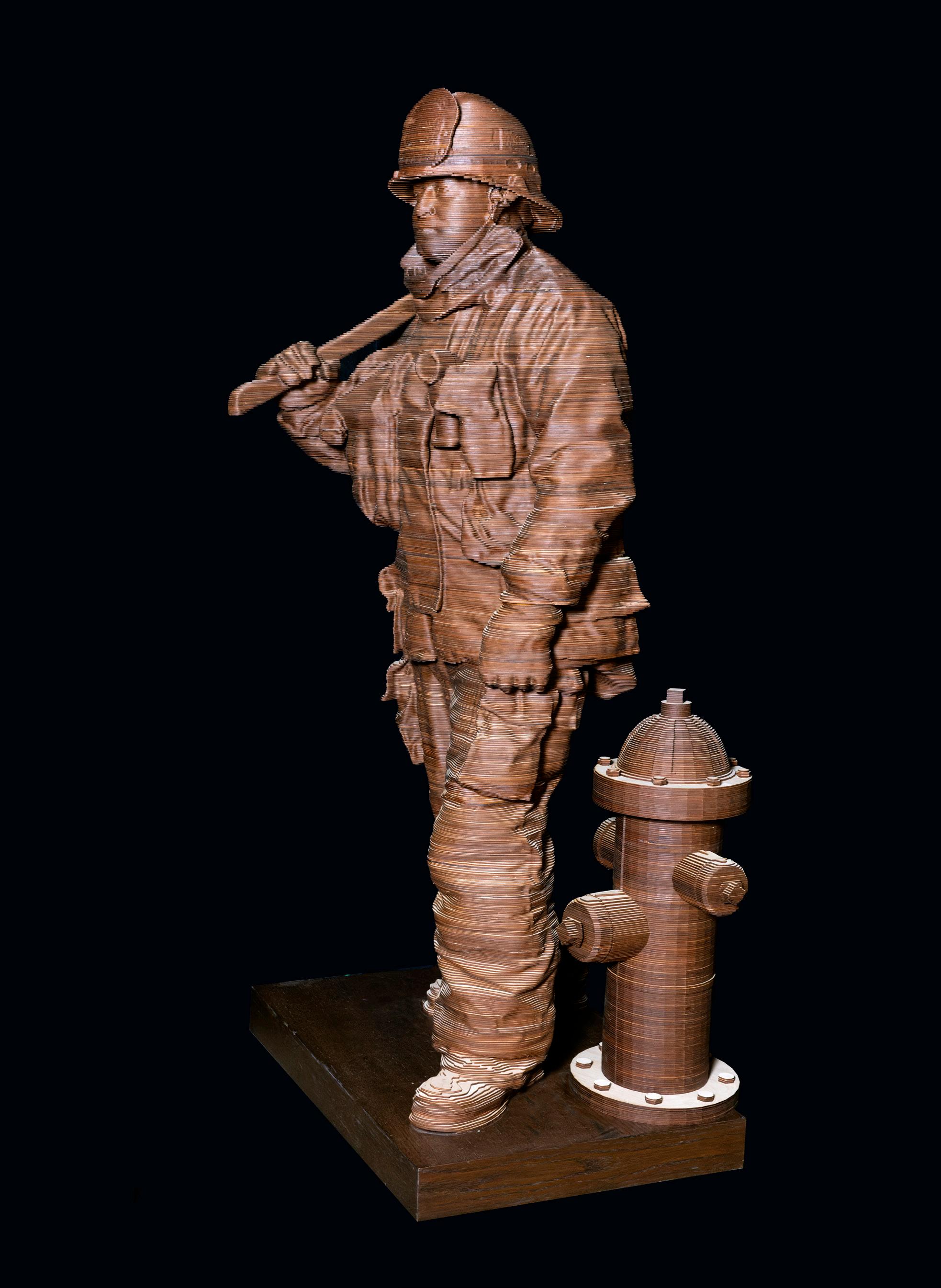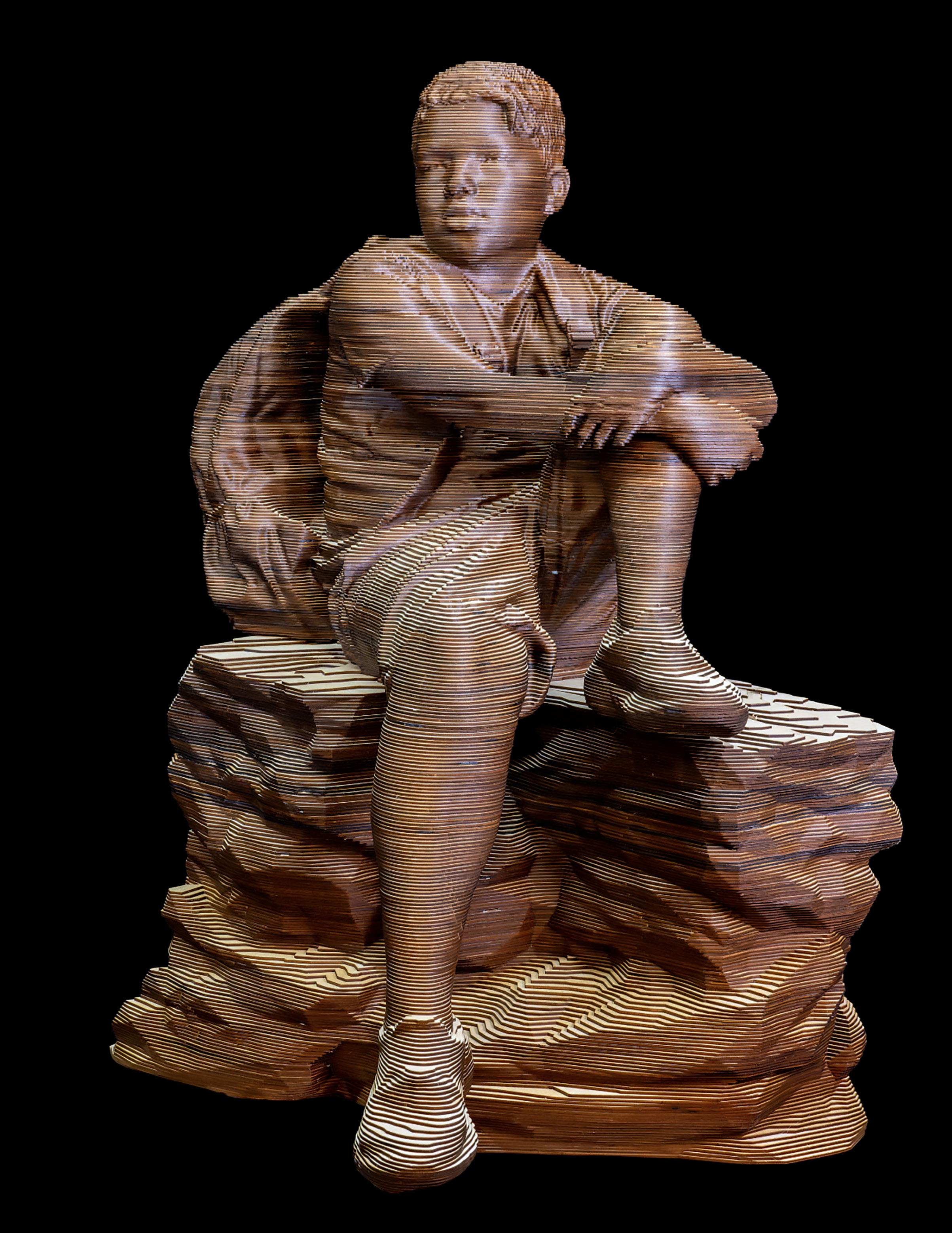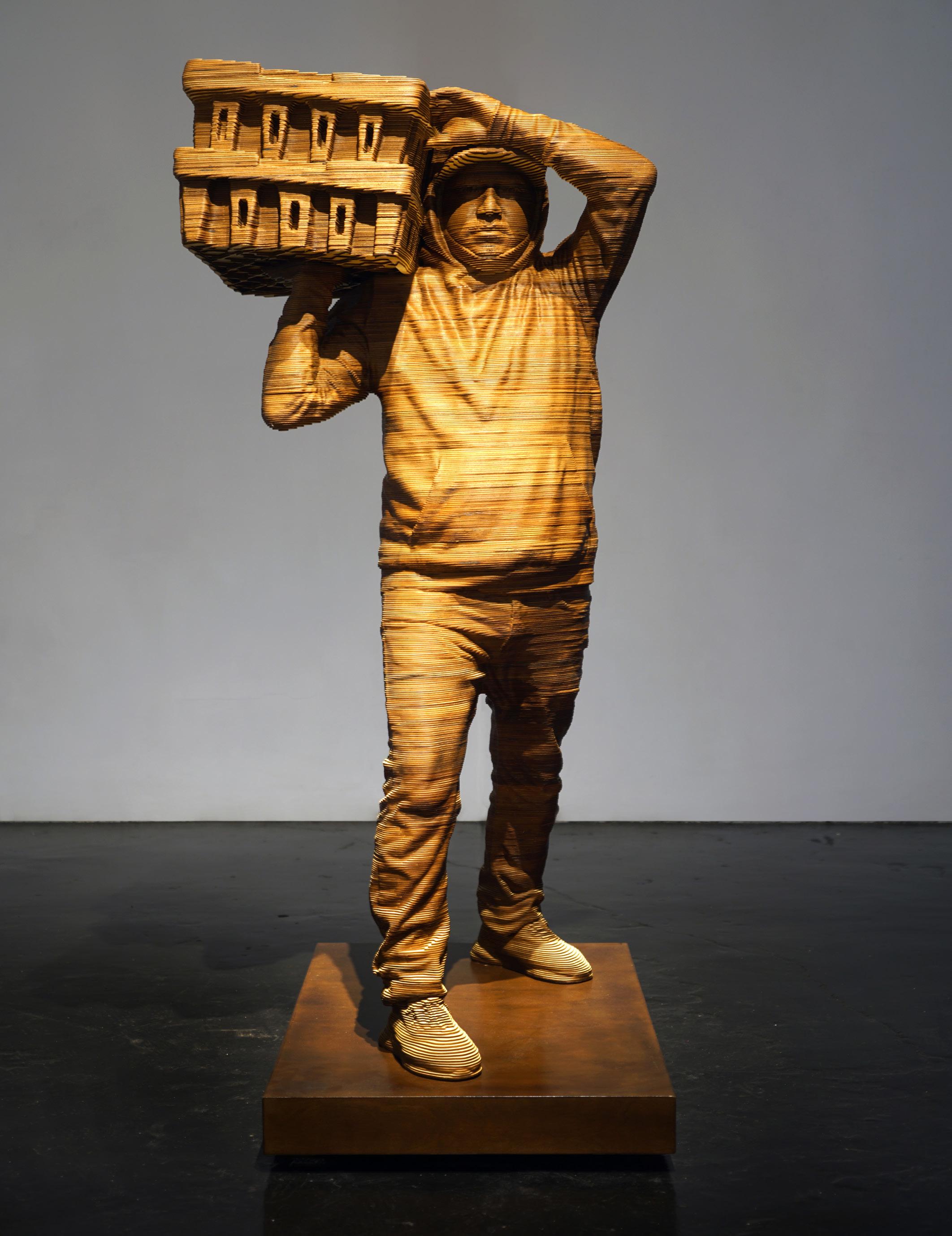 The Warriors is a sculptural series that pays tribute to frontline workers—nurses, teachers, agricultural laborers, and more—through intricately layered wooden sculptures. Each life-sized figure is built from numerous laser-cut layers, creating a pixelated effect that brings these essential workers into the spotlight. Inspired by the Terracotta Warriors of China, the series highlights the often unseen contributions of these modern-day heroes.