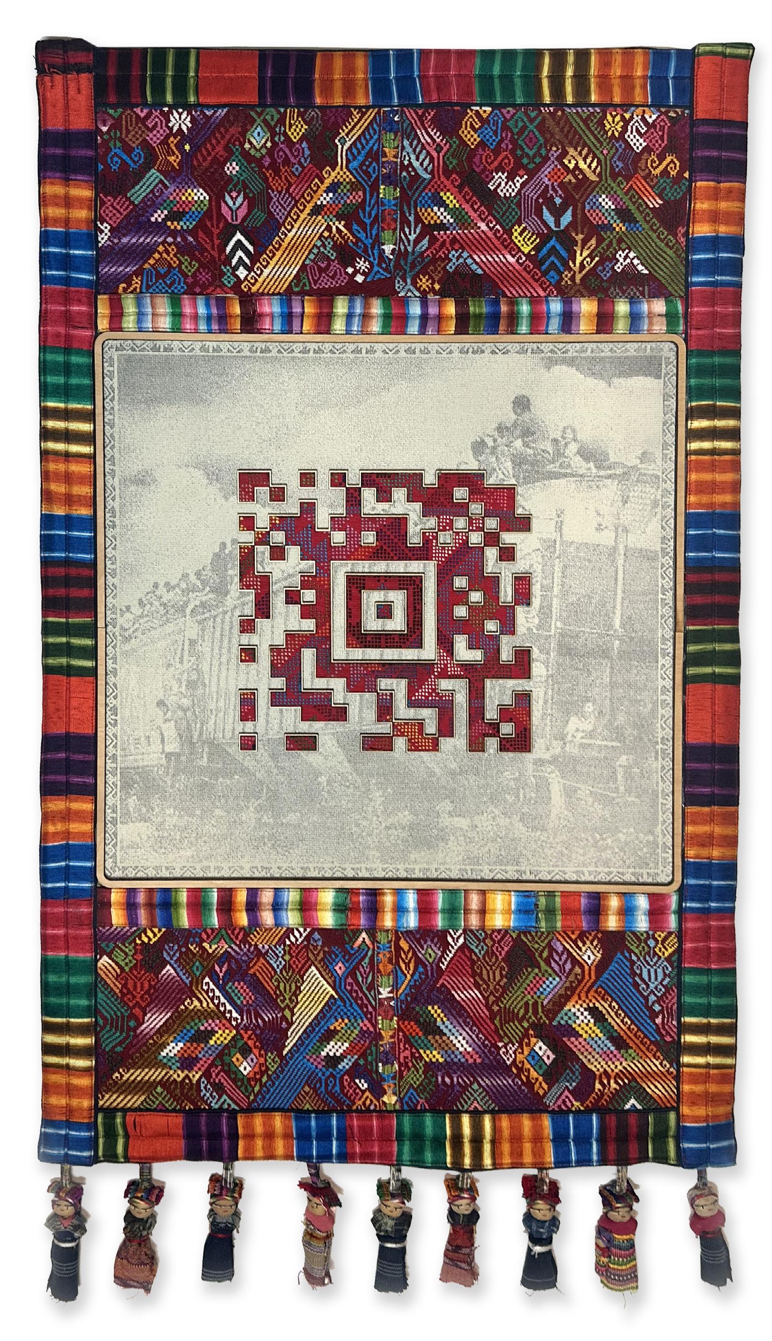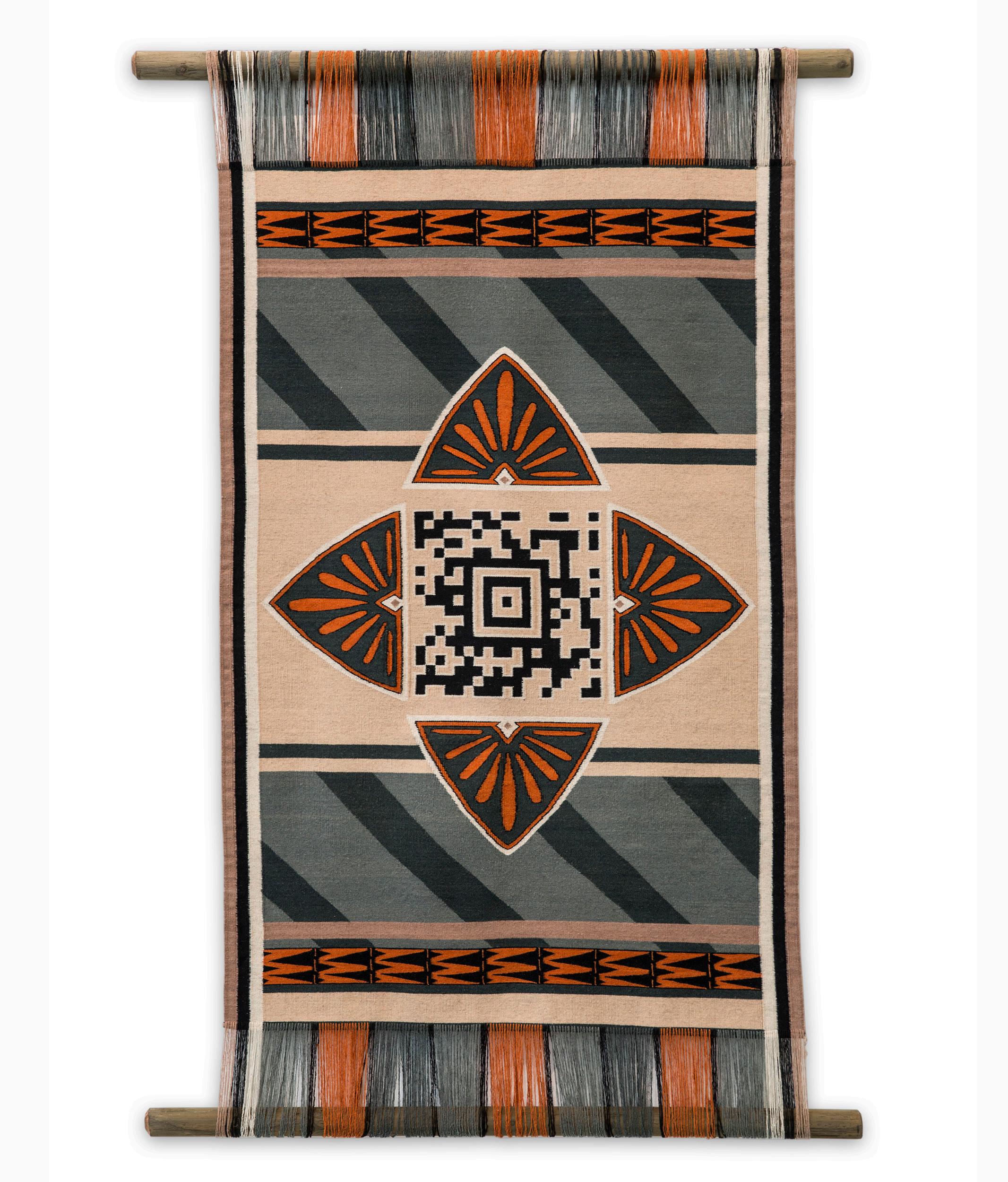 Encoded Textiles is a series dedicated to preserving the traditions of indigenous communities from regions such as southern Chile, the Mayan territories, Oaxaca, and the American Southwest. Guillermo Bert and his team traveled through these lands, recording the voices of elders, poets, medicine men, and community storytellers. By embedding their narratives into textiles woven with QR codes, Bert honors and sustains their cultural heritage.