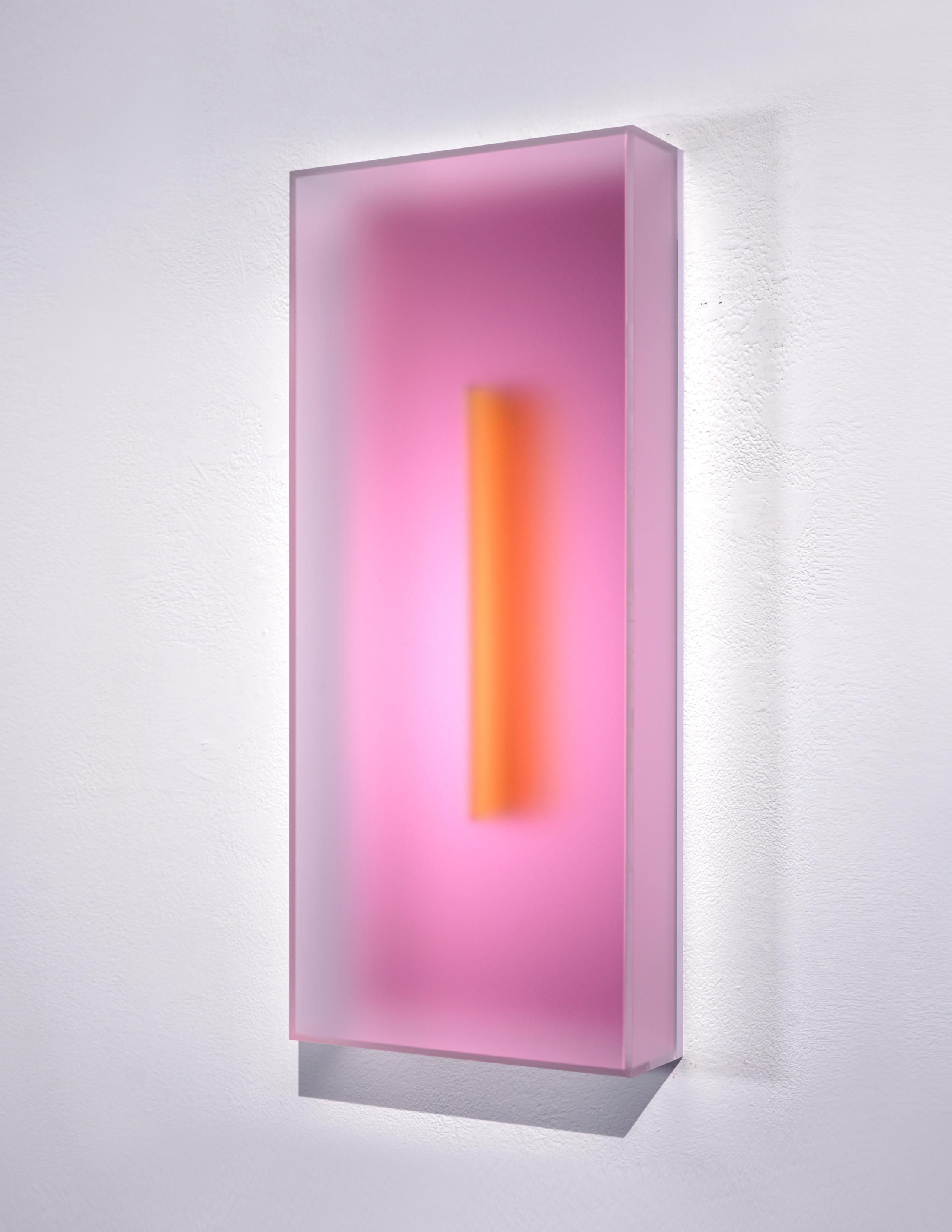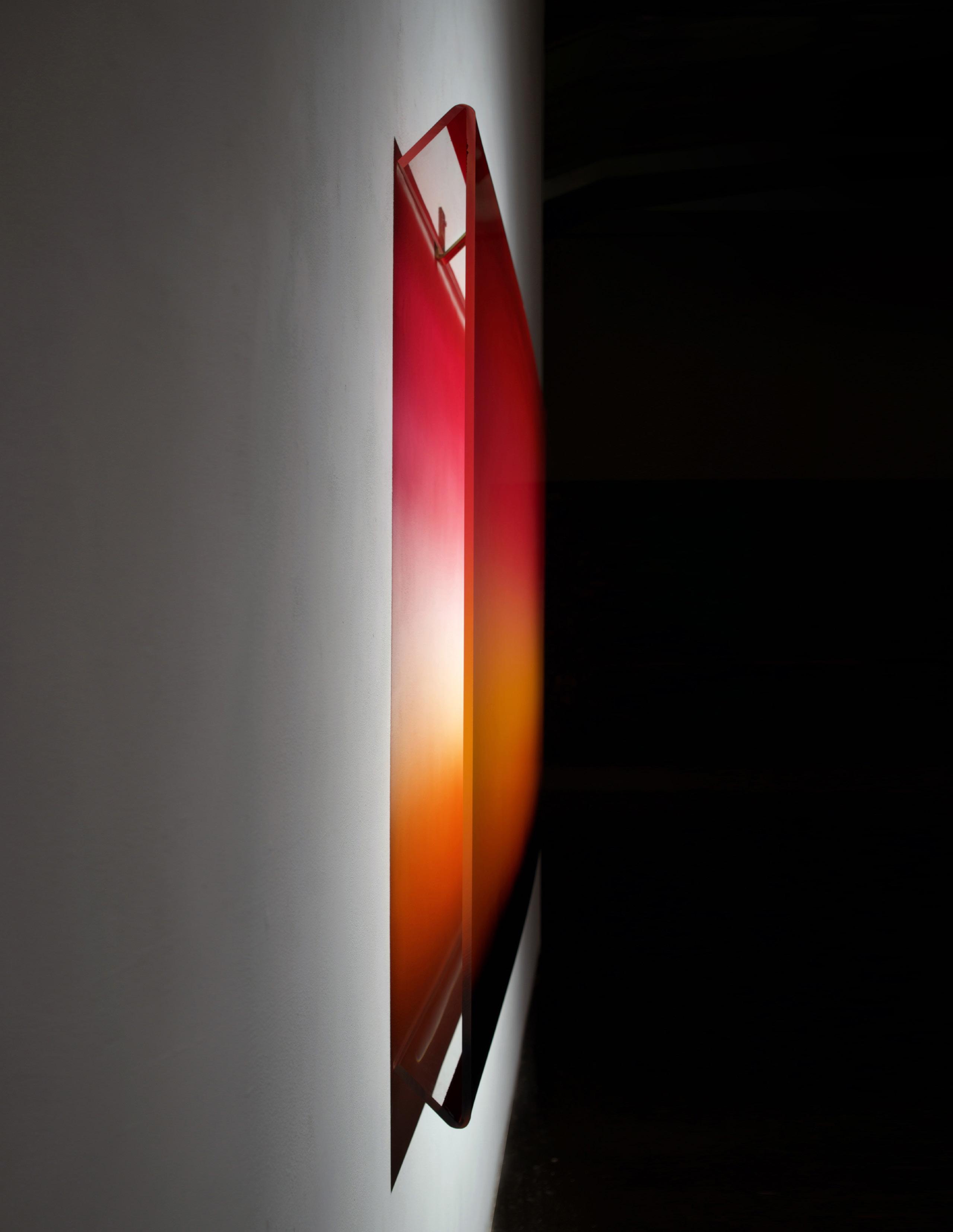 Casper Brindle is at the dynamic leading edge of a dialogue, between artwork and viewer, that began in Southern California in the late 60s and early 70s and became known as Light & Space. The shift that began it all was as subtle as it was profound. The idea and purpose of the artwork shifted; from object to catalyst; from looking “at” the artwork to our experience of “perceiving” the artwork. Artists like Robert Irwin, James Turrell, Helen Pashgian, Fred Eversley, and many others, began to explore this notion of how their work could heighten one’s experience and perception. For Casper Brindle, that initial sensibility has been embraced with an adventurous spirit, leading in