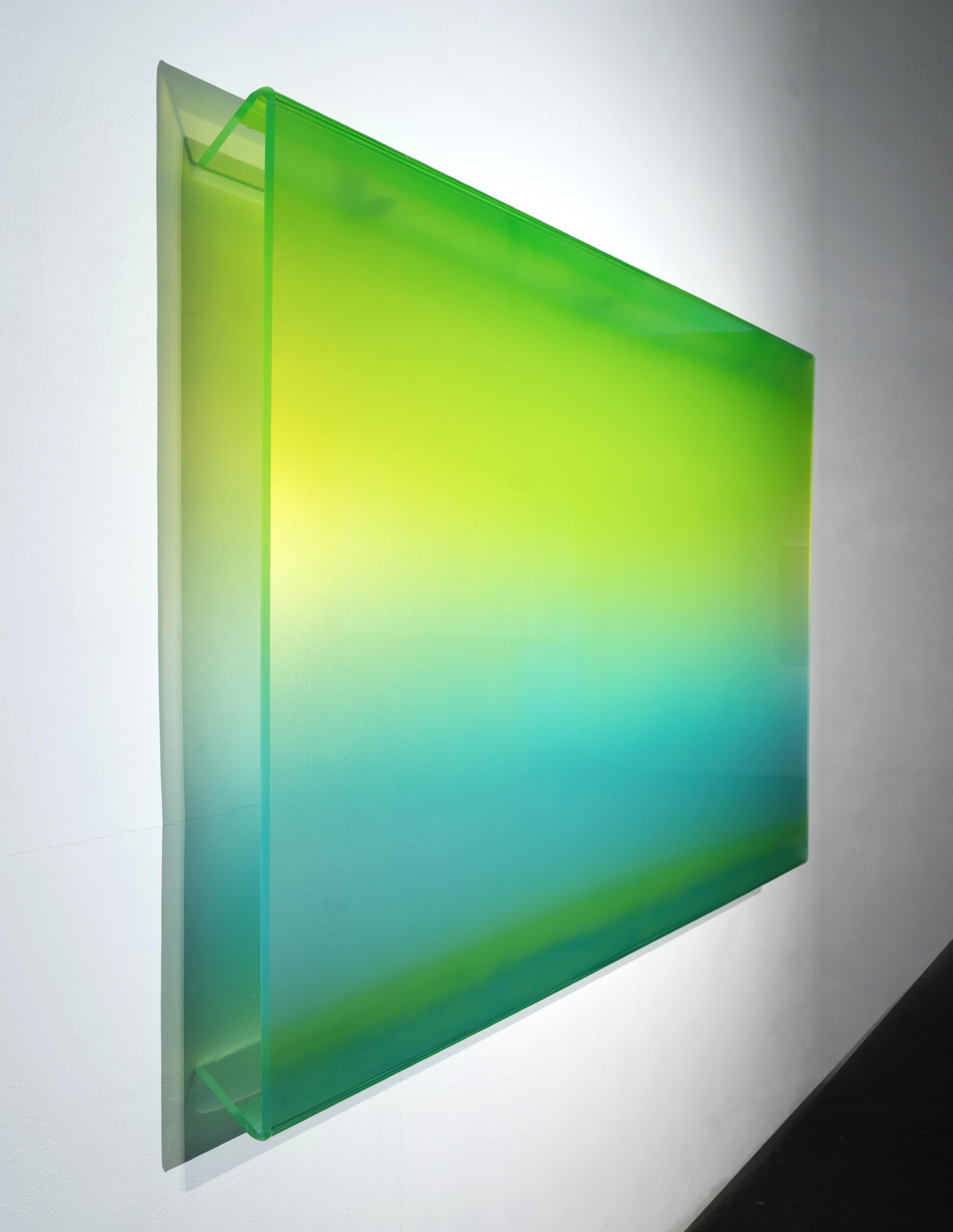 Veil II (Lime) , 2024, Acrylic & automotive paint on formed acrylic, 52” x 72” x 4”