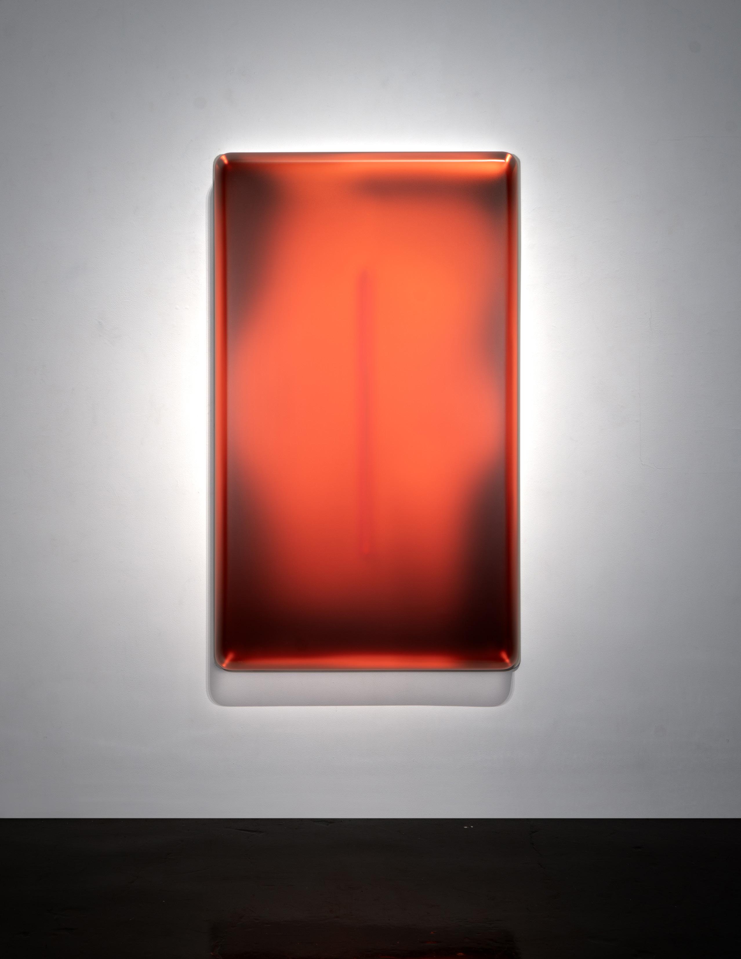 Despite their minimalism, Brindle’s Light Glyphs defy easy categorization. Somewhere between painting and sculpture, these artworks are undeniably experiential. The highly dynamic artworks demand interaction. Their appearance is mercurial, altering in response to shifts in light and perspective, ensuring that no two encounters are ever quite the same. In this way, Brindle’s Glyphs transcend mere visual appreciation, initiating an intimate and subjective dialogue between artwork and viewer—one that must be experienced in person to be fully understood.