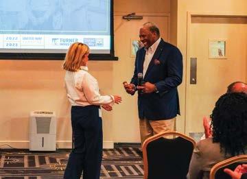 President and CEO George Bell attended the kickoff along with several members of his staff. Turner Public Affairs and Community Relations Director Michelle Hardy has been elected CAUW board chair for the 2022-2023 fiscal year, and during the kickoff meeting , Bell presented her with the official gavel.