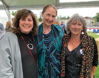 Dancing to the live music on the concourse level are Bibi Danny, from left, Sandra Burungi and Chy An