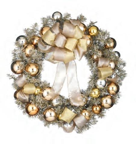 Bring a whole new dimension to your holiday decorating with this evergreen wreath featuring sparkling metallic branch tips. This glittering piece is pre-strung with 50 battery-operated warm white LED lights
