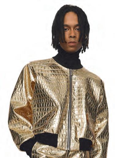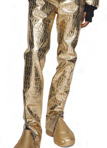 Always on the edge, Italy’s Dolce Gabbana shines again with this foiled technical fabric casual suit. Sure to be the talk of any affair, it looks best with the matching sneakers, sold separately.
