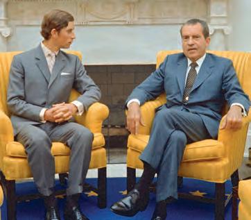 <- Photos: Top - Camilla, Queen Consort of the United Kingom with husband King Charles III at Winfield House in London in 2019. 2nd Down - Queen Elizabeth II and the Duke of Edinburgh with daughter Princess Anne and son Prince Charles in 1957. 3rd Down - The name’s Charles . . King Charles. A movie star look for an official photo taken in 1972 of HRH The Prince of Wales at Buckingham Palace, London. Bottom - A young King Charles meets with American President Nixon in the Oval Office in 1970.
