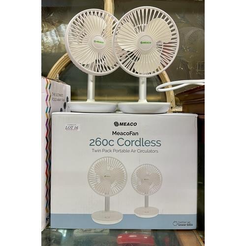 16. BOXED TWIN PACK MEACO FAN 260C CORDLESS AIR CIRCULATORS